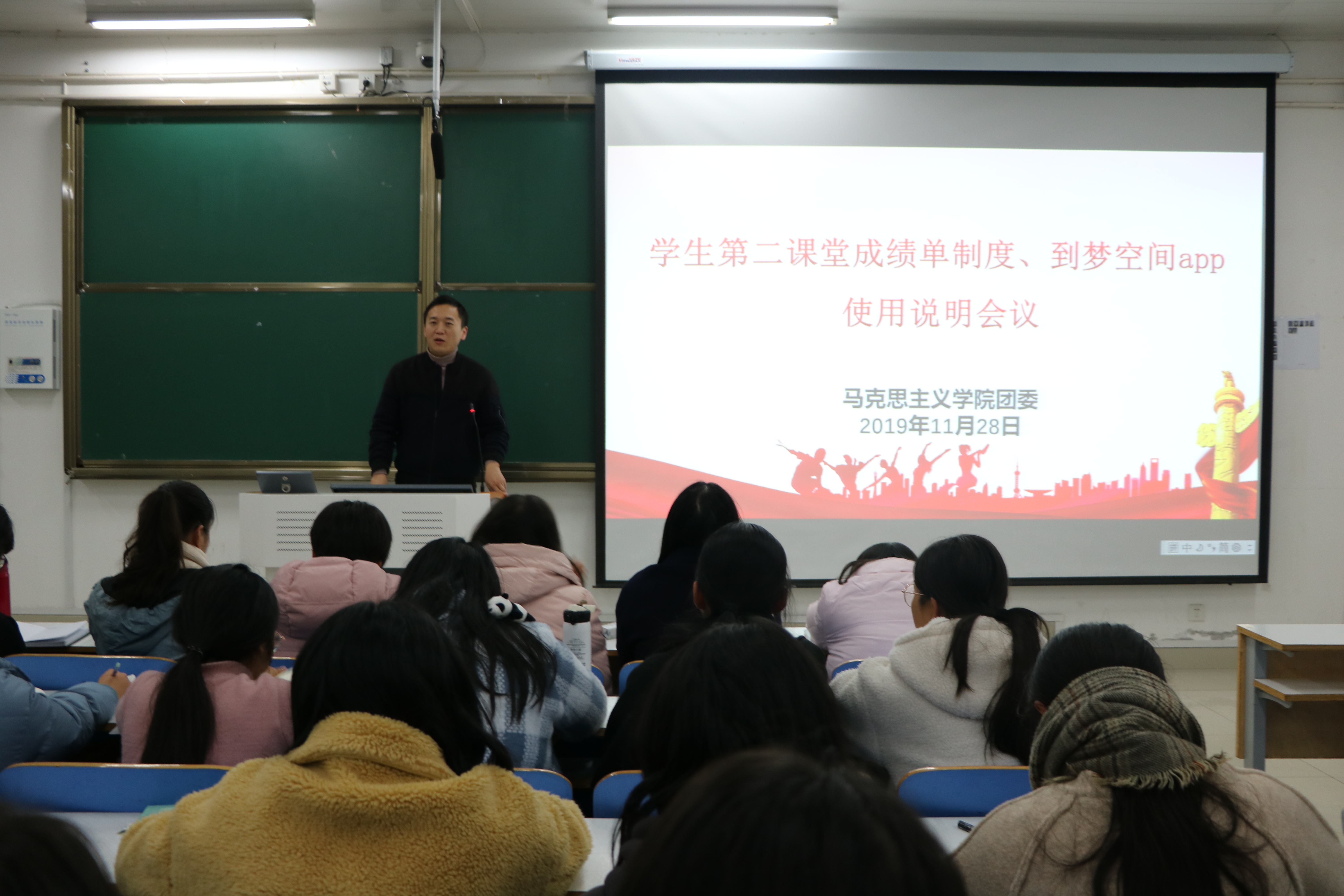 为帮助同学们熟悉并掌握“到梦空间”软件的使用规则,发挥第二课堂的辅助作用,11月28日下午,太阳集团tyc5997团委在社科楼516教室召开第二课堂成绩单制度与“到梦空间"软件使用说明会。太阳集团tyc5997团委书记曹栋、学生会主席团成员、学院到梦空间负责人及2019级全体学生共同参加本次会议。会议由曹栋主持。