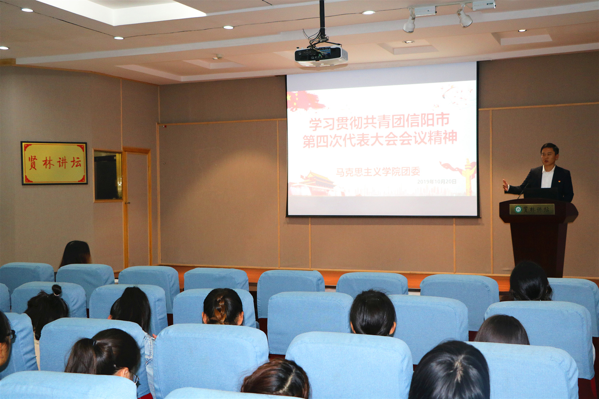为深入学习贯彻落实共青团信阳市第四次代表大会会议精神,10月20日下午,太阳集团tyc5997团委书记曹栋在贤林讲坛为我院19级团员青年宣讲共青团信阳市第四次代表大会会议精神。我院党委副书记何晓坚、辅导员陶青青及2019级太阳集团tyc5997全体团员青年共同参加了本次会议。