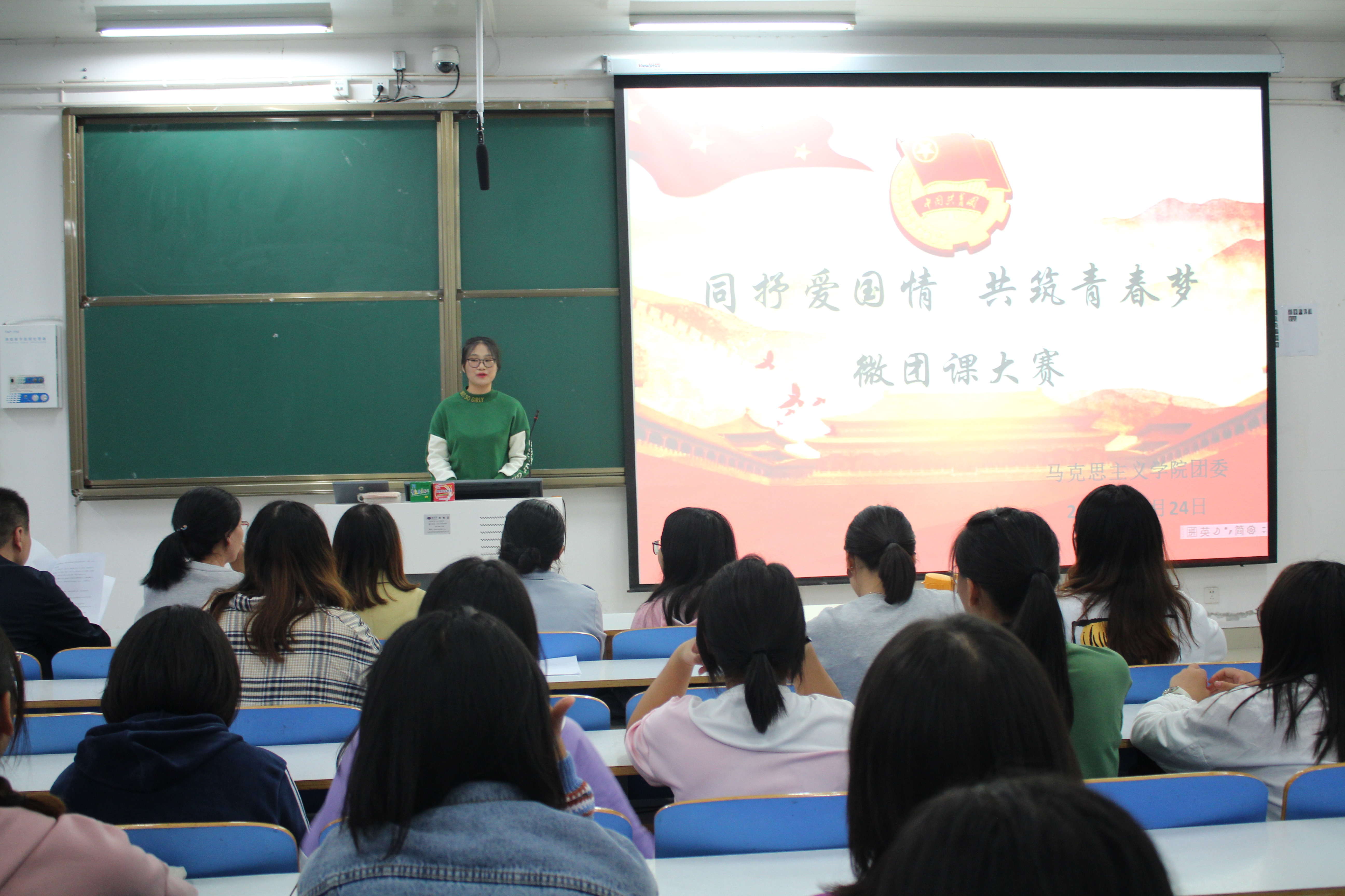 为深入学习贯彻习近平新时代中国特色社会主义思想,培养青年学子爱国情怀,10月24日下午,太阳集团tyc5997在社科楼516教室举行“同抒爱国情,共筑青春梦”微团课比赛。我院科研秘书常文涛、研究生老师卢云晓、团委书记曹栋、团委老师曹菁菁、团委老师陶青青以及研究生学生代表出席比赛并担任评委。我院2019级全体学生共同观摩本次微团课比赛。比赛由分团委办公室李淑君主持。