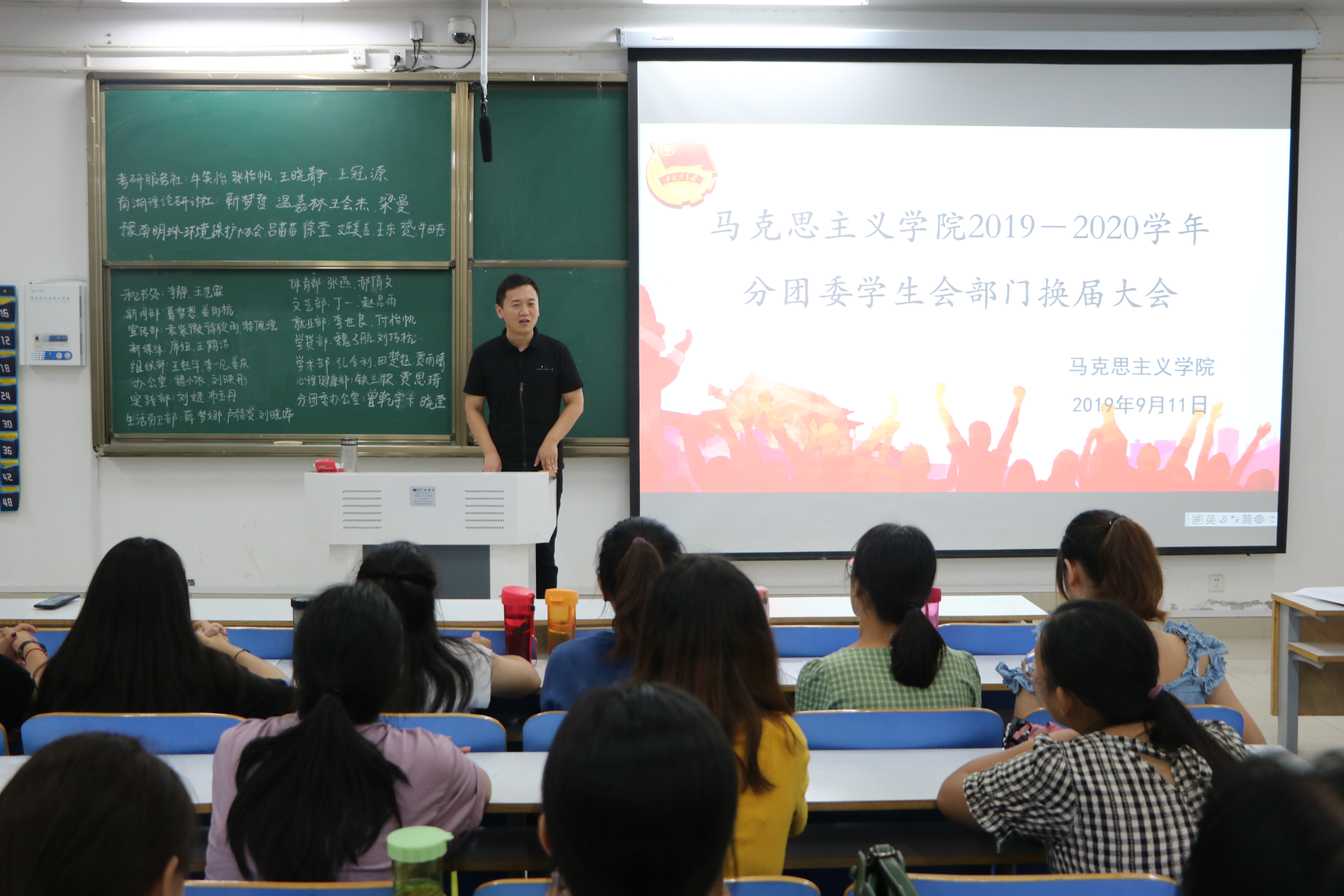 9月11日晚,我院于社科楼516教室举行2019-2020学年学生会部门换届大会,团委书记曹栋与学生会全体成员共同参加了本次换届大会。大会由王文芳主持。
