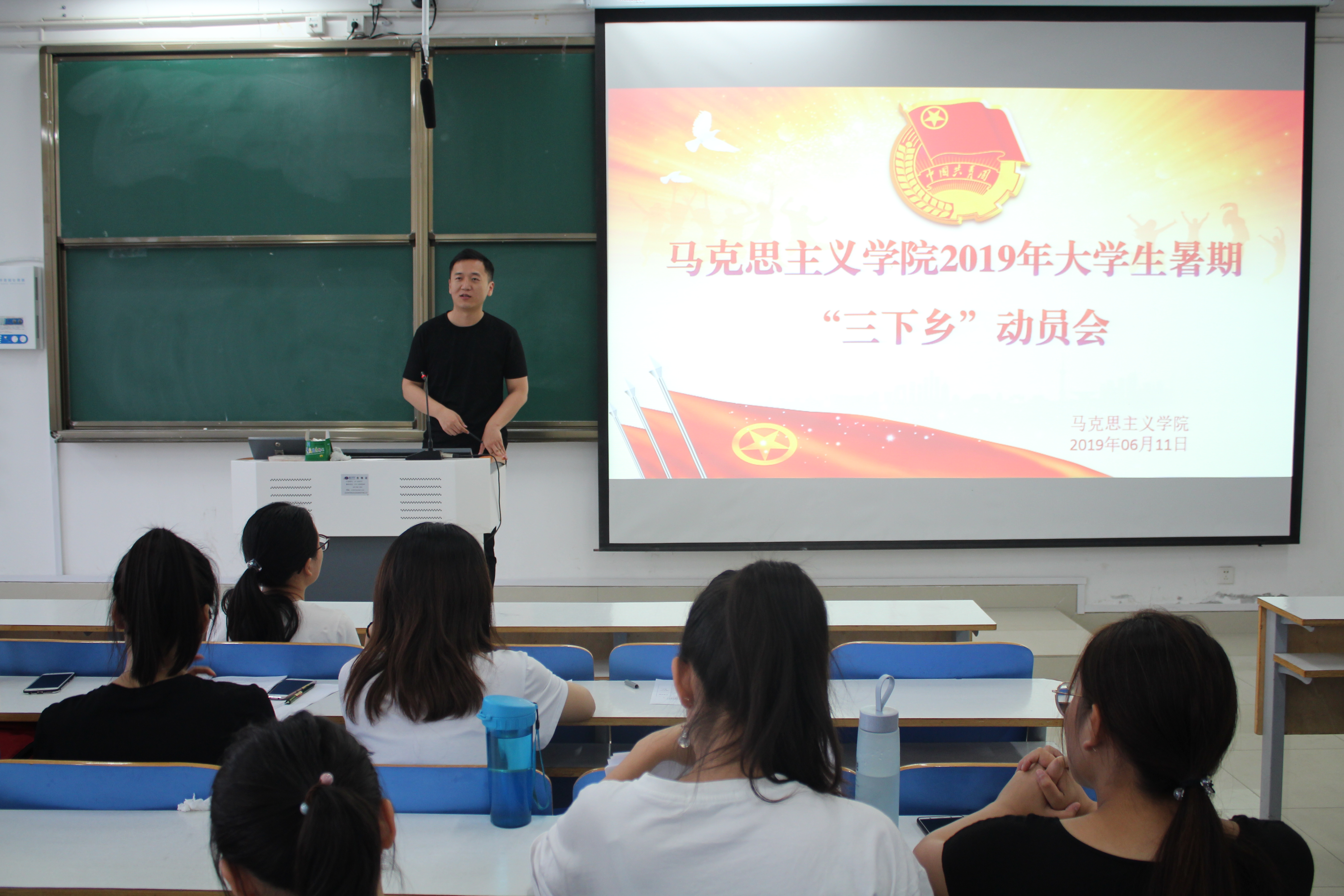 6月11日下午,太阳集团tyc5997在社科楼516教室开展2019年大学生暑期“三下乡”动员会。我院团委书记曹栋、团委老师曹菁菁、学生会主席团及2018级全体成员共同参加了本次动员会。动员会由分团委副书记肖妍杰主持。