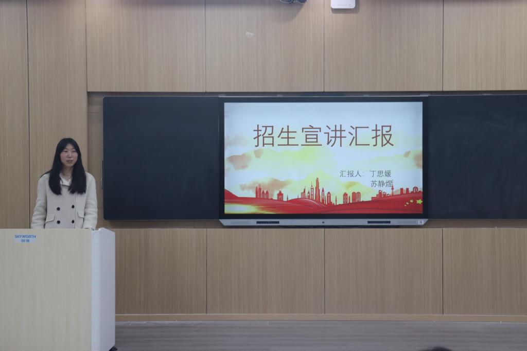 会上,各宣讲团队代表从团队介绍、活动准备、招生宣讲、答考生问、心得感悟、问题及改进措施六方面进行汇报。团队成员通过展示图片、视频,发放宣传资料等方式,从不同角度展示了我校在校园文化、学习氛围、学科建设、教育资源、师资力量等方面的优势,加深中学生对我校整体的了解,激发学生的报考热情。其中,“挥笔写芳华,逐梦信师大”宣讲队打破空间局限,在校园宣传的同时深入社区,扩大宣传范围。团队队员采取面对面、小范围、互动式回答的方式为同学们答疑解惑。该团队成员表示,此次招生宣传活动不仅提升了自身能力,更扩大了我校的知名度、影响力,对学校招生宣传工作起到积极作用。