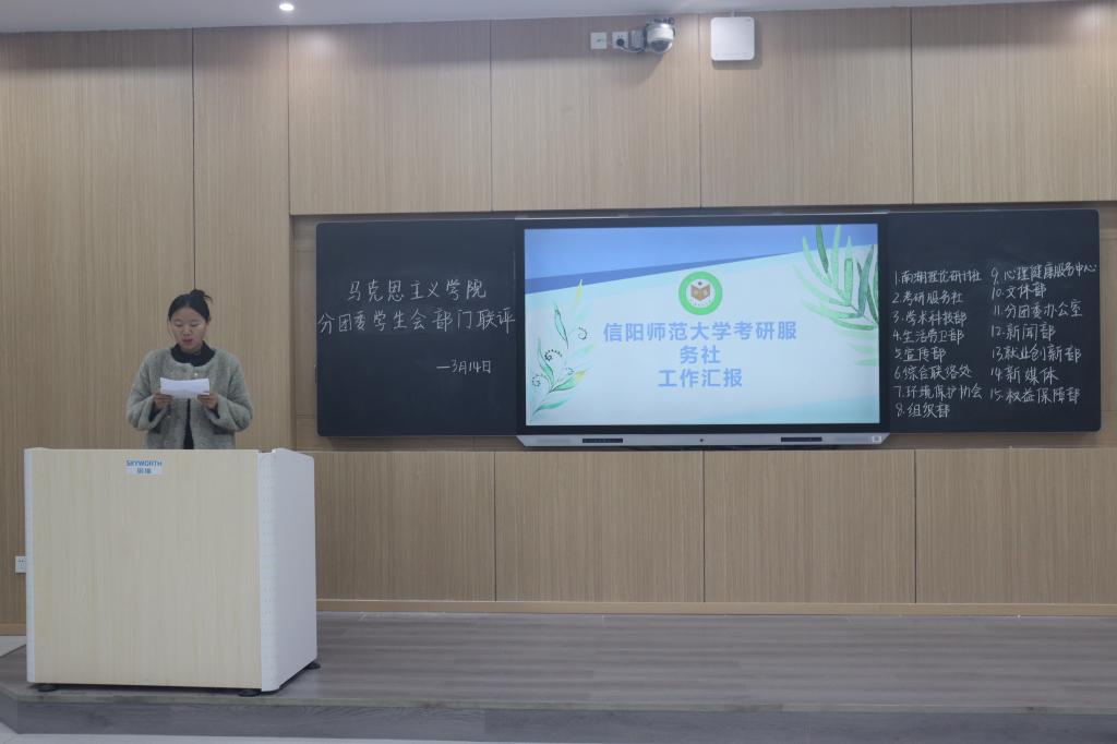 3月14日下午,太阳集团tyc5997在社科楼516教室举办学生会部门联评活动。我院团委书记陶青青以及学生会各部门负责人共同参加本次活动,活动由学生会执行主席闫梦辉主持。