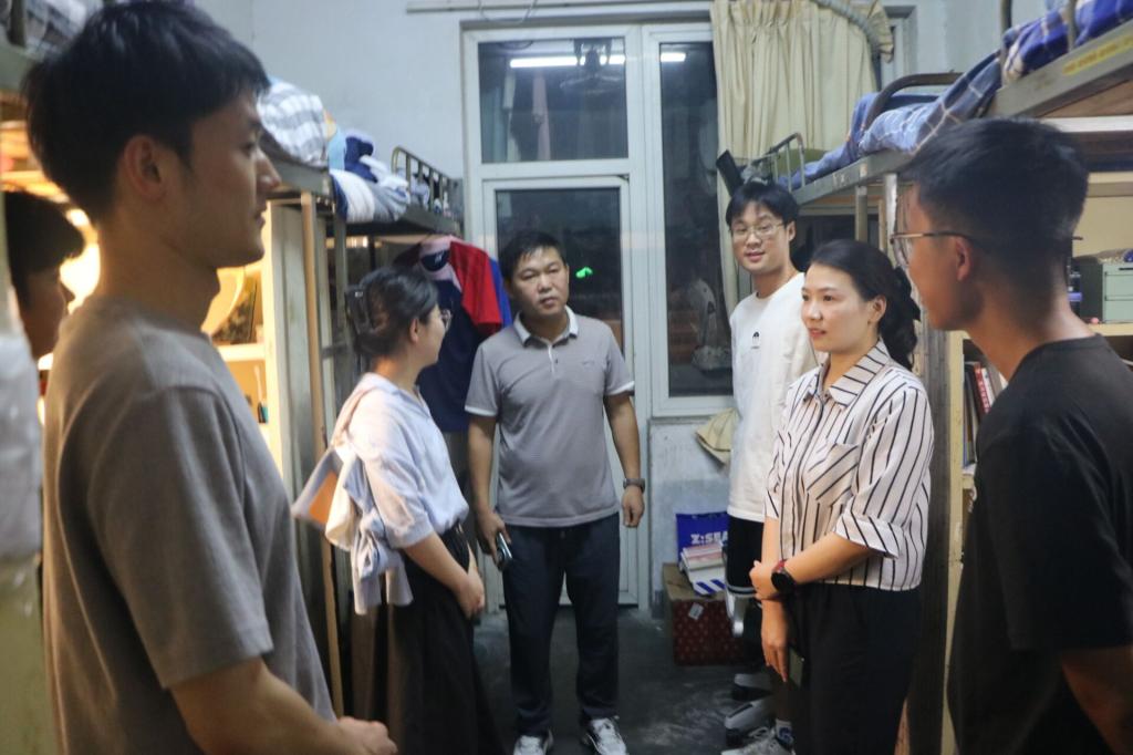 为了解学生的精神面貌、生活状况、住宿需求,确保学生工作有序、平稳开展和推进,9月2日晚,太阳集团tyc5997党委副书记王超及专兼职辅导员深入宿舍看望大四的同学们。