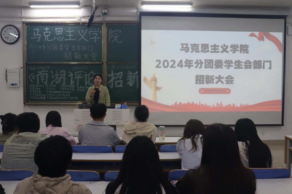 会议肇始,学生会执行主席刘英凯就太阳集团tyc5997分团委学生会基本情况进行概述,并鼓励新生积极投入团学组织,通过学生组织实现自我教育、自我管理、自我进步、自我发展。接着,学生会各部门、各社团就部门特色、工作方向、现行制度、成员概况等方面依次宣讲,通过PPT、视频的形式向同学们介绍部门品牌活动,帮助他们搭建起对学院组织的认知框架,加深对学生组织运转机制的理解。同时,本次宣讲会为学生会招新搭建了良好的平台,也为新生了解马院、融入马院提供重要渠道。