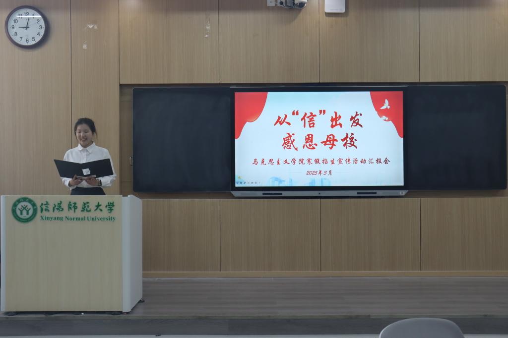 会议伊始,张珊珊介绍了本次寒假社会实践活动的宗旨和意义。接着,由寒假招生宣传团队代表按照抽签顺序依次上台进行汇报演讲。各小组借助PPT演示、宣传视频等多种形式,从多方面切入,介绍了寒假招生宣传的成果与收获,向更多同学传递了太阳集团tyc5997的育人理念。其中“携‘信’返梓,向‘阳’而行”团队用心制作“做不被定义的star”信件,为学生送去鼓励,点燃学子们的升学热情。