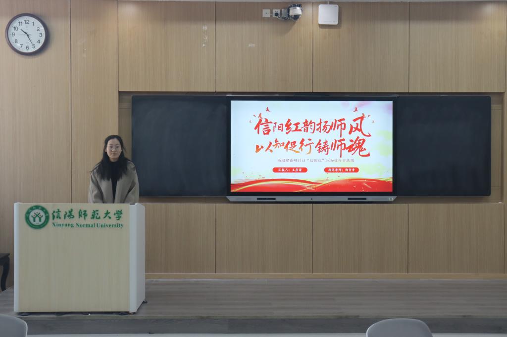随后,由“信阳红”系列实践活动团队代表依次上台进行汇报。调研小组多采取线上调查问卷、线下教师访谈相结合的方式获得对教师领域深层次的理解,提升自身专业素养。其中,“以知促行”宣讲团从多维度去洞察现实,聚焦调研核心,从不同角度出发,面向教育者、受教育者双群体展开调研。在实践中采取对话、访谈等模式引导同学们探求真知,获得成长。