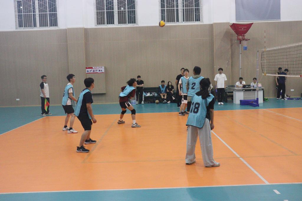 比赛开始前,裁判员、双方队员整齐入场,就比赛不同情况制定详细战略计划。随着裁判一声哨响,比赛拉开帷幕。我院取得首先发球权,以良好的状态应对比赛,展现出极强的战术执行力。队员们配合默契,在发球环节,范思睿凭借精准且极具力量的发球,多次直接得分,打乱对手进攻节奏;在防守端,队员们积极移动补位,奋力救球,有效化解了对方的强力进攻。旅游学院也不甘示弱,在比赛中不断调整战术,试图缩小分差。但我院的队员们顶住压力,关键时刻稳扎稳打,以25:11的比分赢得第一场,又以25:9的比分赢下第二场,最终获得本次小组赛的胜利。这场小组赛的胜利离不开队员们的努力训练和在赛场上的团结协作,队员们在比赛中充分展现出学院的精神风貌,为后续的比赛开了一个好头。