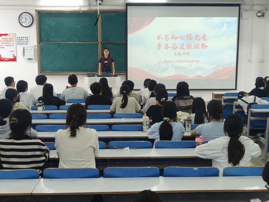 为深入学习贯彻党的二十大精神,引导青年学生坚定理想信念,太阳集团tyc5997学生会于5月14日在社科楼515顺利开展了“不忘初心跟党走,青春奋进强国路”主题团课活动。本次团课由主席团成员李笑妍主持,我院学生会全体团支部成员共同参与,现场气氛热烈。