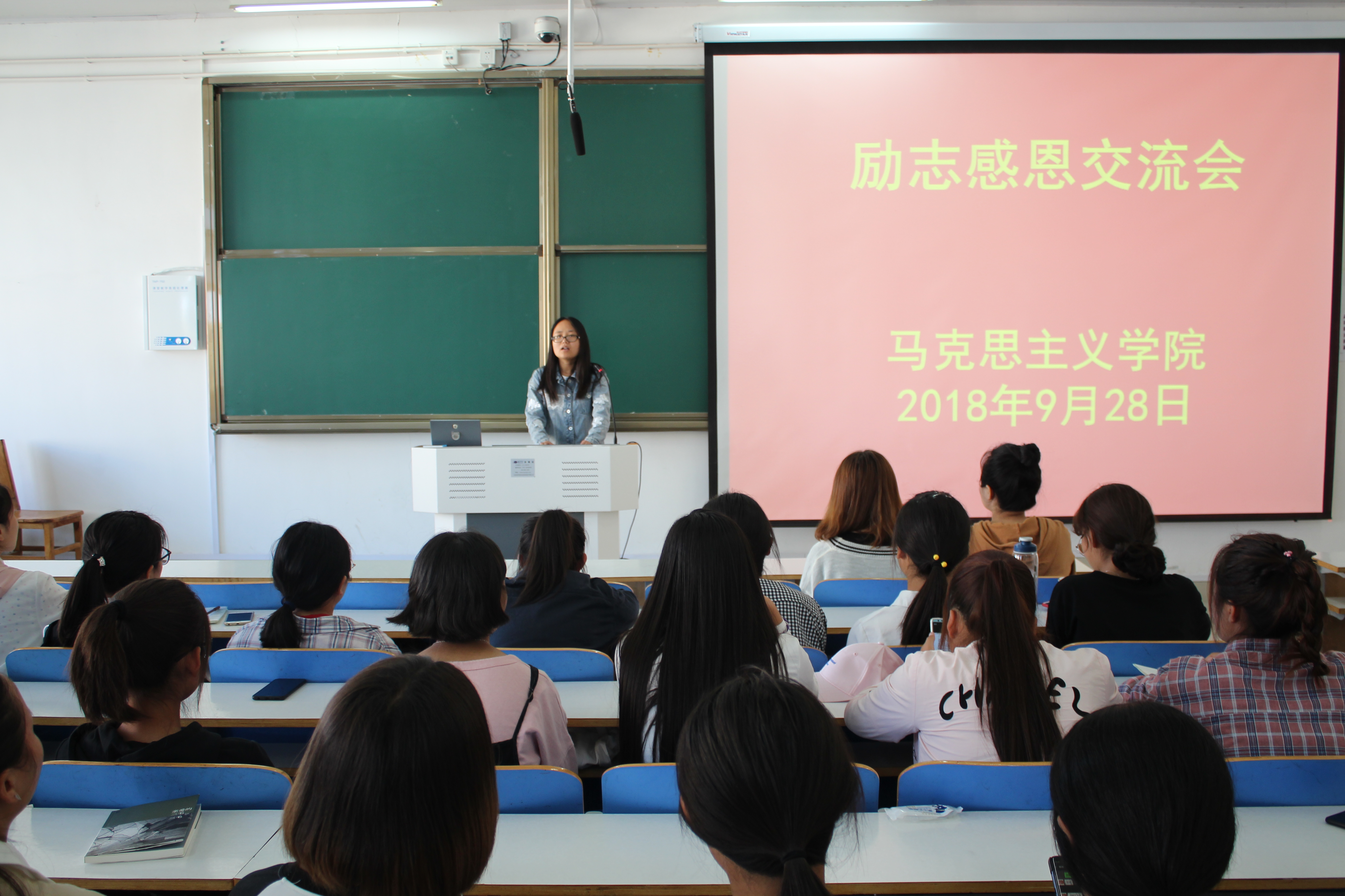 为激励同学们奋发向上,9月28日,我院于社科楼516教室召开励志感恩交流会。资助专员曹菁菁,2018年国励获得者胡艺博和2018级全体学生参加此次交流会。