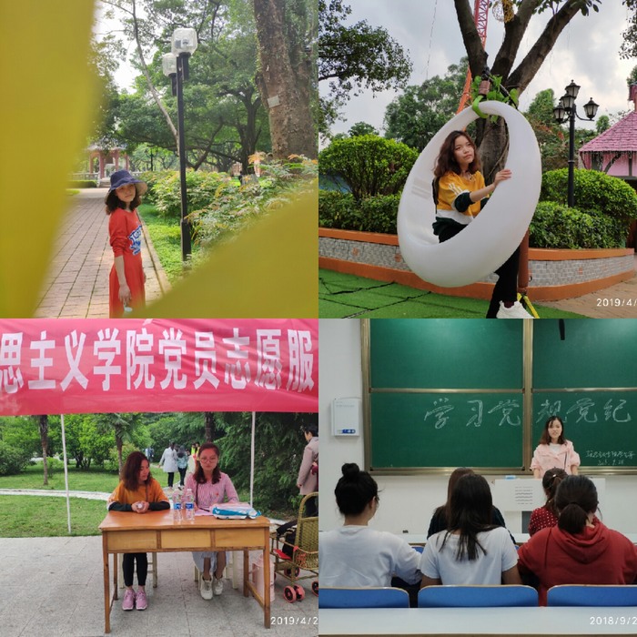 思想方面,积极要求进步,不断提高政治素养。作为一名共产党员,时刻用党员的标准严格要求自己,接受党组织的考验。学习方面,刻苦努力,力求上进。连续三年学年综合测评中,名列前茅,连续三年获得校级奖学金,取得了比较满意的学习成绩。2017年,《学习长征精神,走好人生之路》和《平凡爱情中的人性美——读< 平凡的世界>有感》两篇文章在学院杂志《南湖评论》第1期发表。