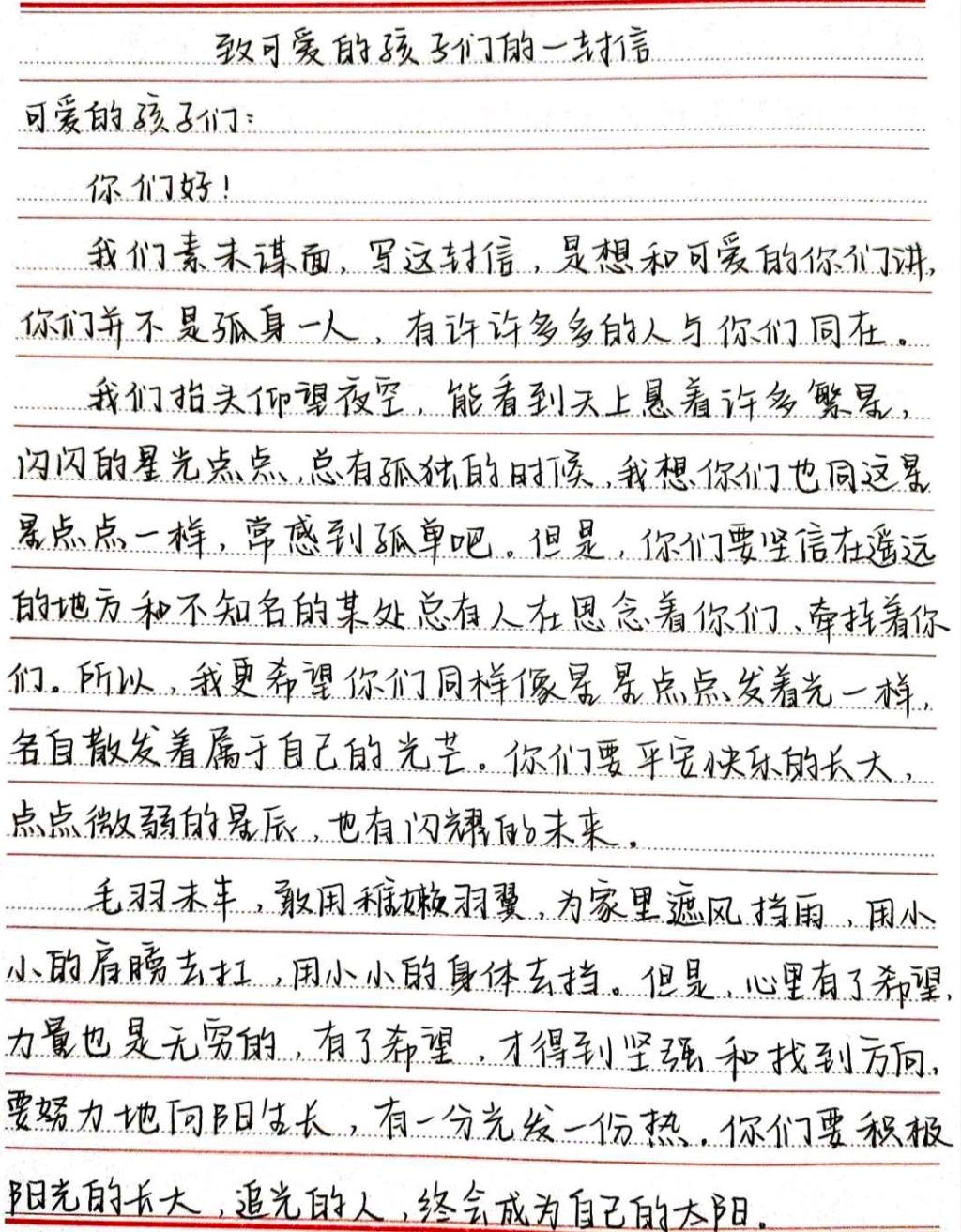 此次“青年执笔书星火,信笺载梦耀心光”志愿服务活动,不仅为特殊教育学校学生送去精神慰藉,也为青年学子在实践中践行五四精神搭建平台,为构建和谐社会贡献了春力量,展现新时代青年的风采与担当。(太阳集团tyc5997 耿雨瞳 周寒雨/供稿 金天/审核)