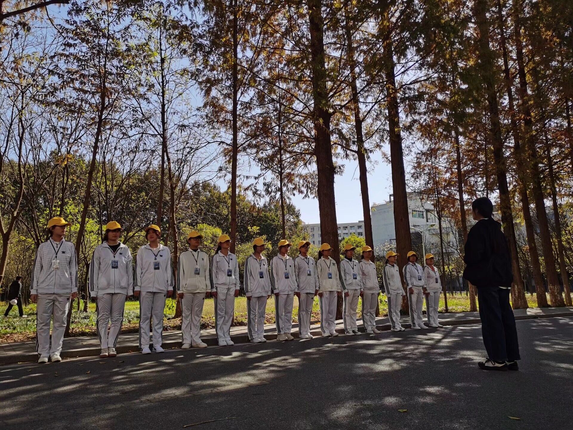 首先,和往常一样,全体队员在社科楼下集合并自觉整理着装、队牌,由组织部部长进行点名,12点40分准时从社科楼出发前往执勤点。队伍整齐,步伐一致,那一抹白,在渐冷的初冬,仍然展现出昂扬的姿态与蓬勃的生机。在执勤过程中,与同样进行环保工作的校园环境巡查队进行友好照面,我们共处一片蓝天,守护同一个校园。最后,在落叶飘零的执勤点处,环保志愿服务队队长对此次执勤活动进行总结,对队员整体表现表示肯定,给予鼓励。