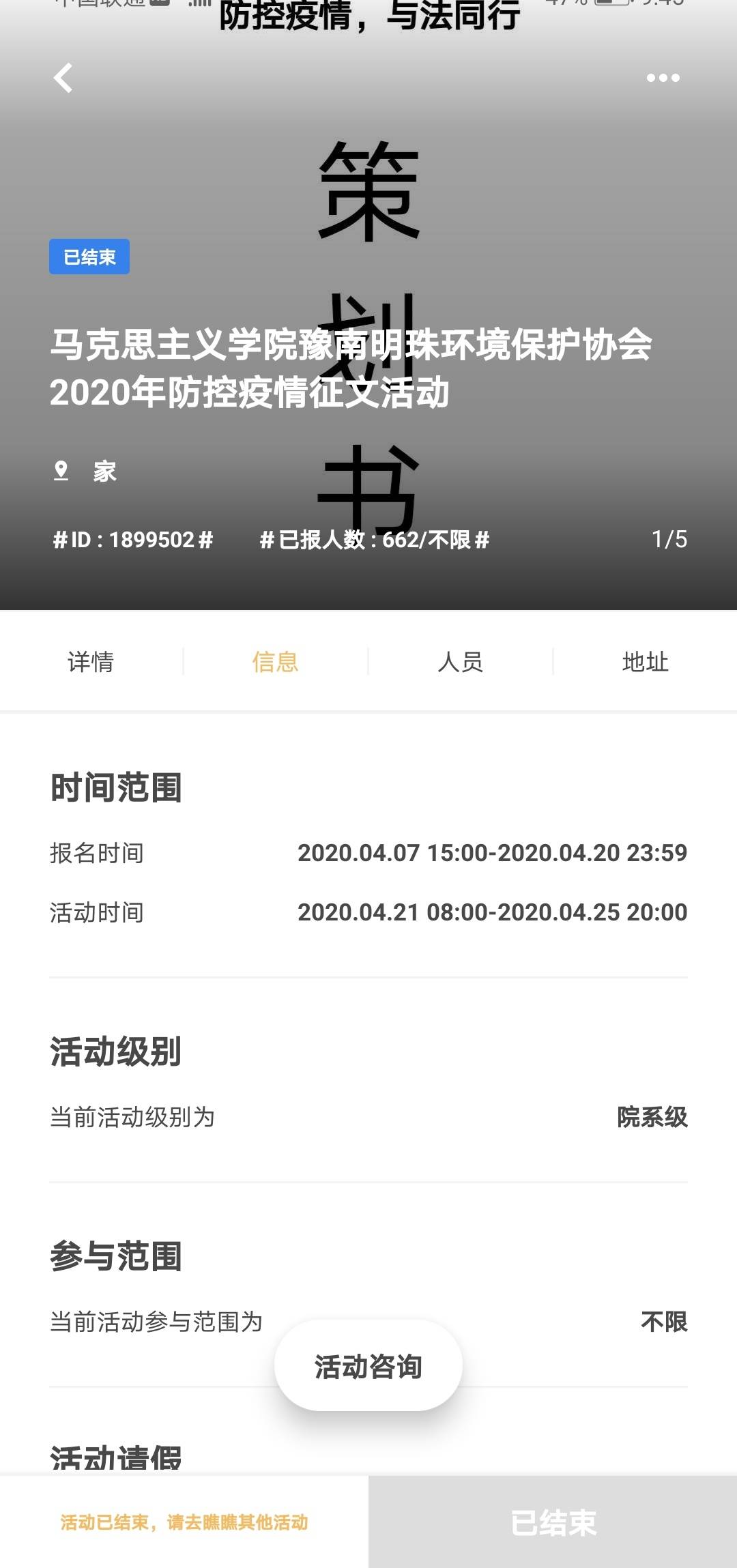 为引导学生树立法治意识,加强对学生有关野生动物保护的法治宣传教育,4月11日—4月20日,由太阳集团tyc5997分团委主办、豫南明珠环境保护协会和《南湖评论》编委会承办的以“防控疫情,与法同行”为主题的征文活动于线上顺利开展。
