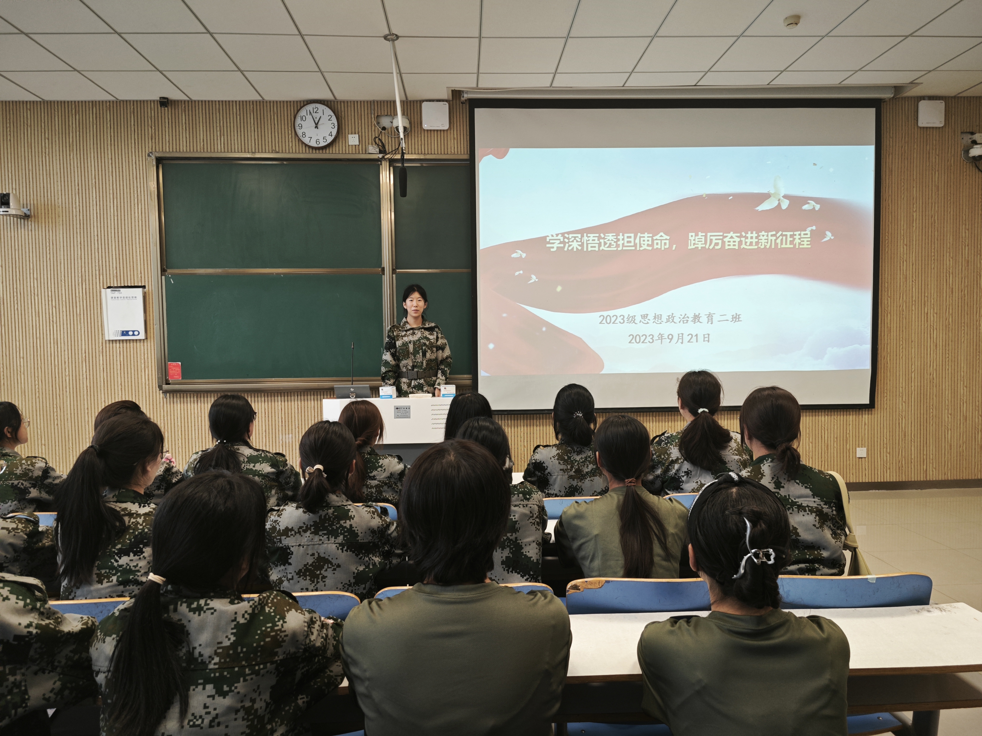 9月21日下午,太阳集团tyc59972023级思想政治教育二班在社科楼515教室召开“学深悟透担使命,踔厉奋进新征程”主题团课。我院2023级思想政治教育二班全体同学参与本次团课,团课由班级负责人王慜初主持。