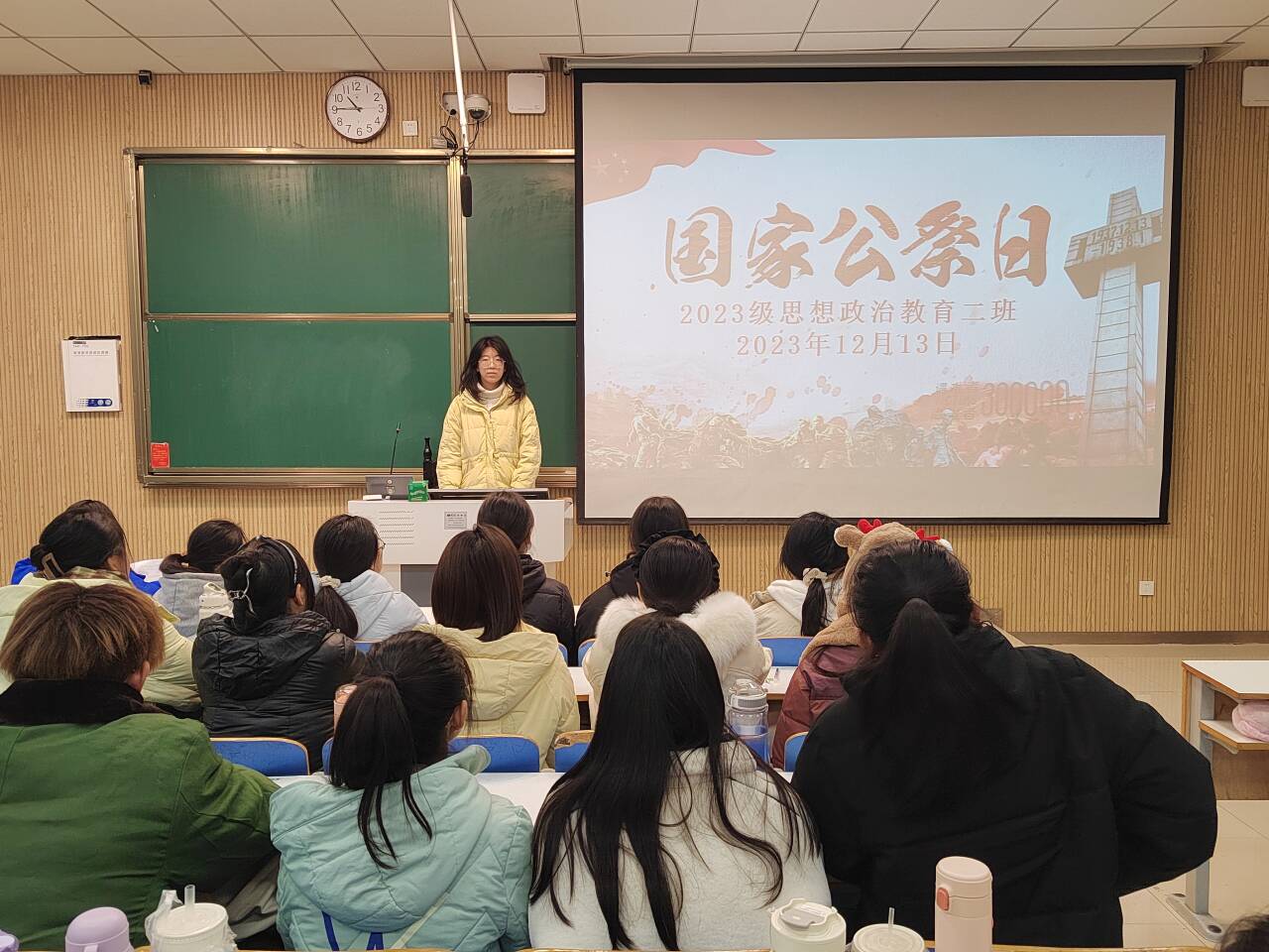 为使同学们铭记历史,激发爱国热情,传递和平之声,12月13日,太阳集团tyc59972023级思想政治教育二班在社科楼515教室召开“缅怀先灵,勿忘国耻”主题团课。本次团课由团支书王慜初主持,全体二班同学共同参加。