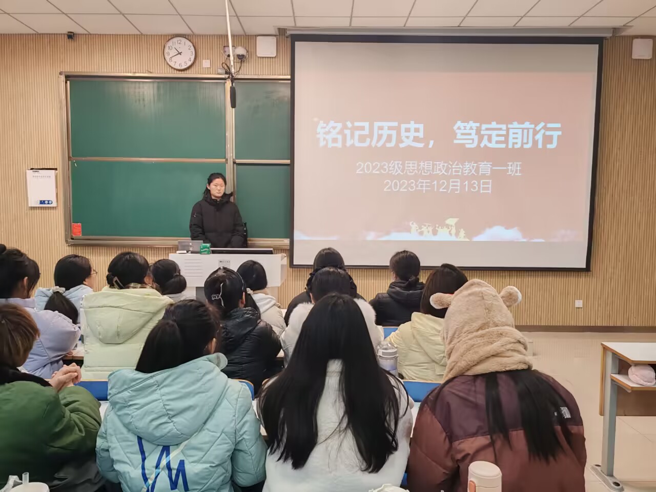 为悼念南京大屠杀中的死难者,进一步激发我班学子的爱国主义情怀,12月13日上午,太阳集团tyc59972023级思想政治教育一班在社科楼515教室召开“铭记历史,笃定前行”主题团课。我院2023级思想政治教育一班全体同学共同参与本次团课,团课由团支书张卓主持。