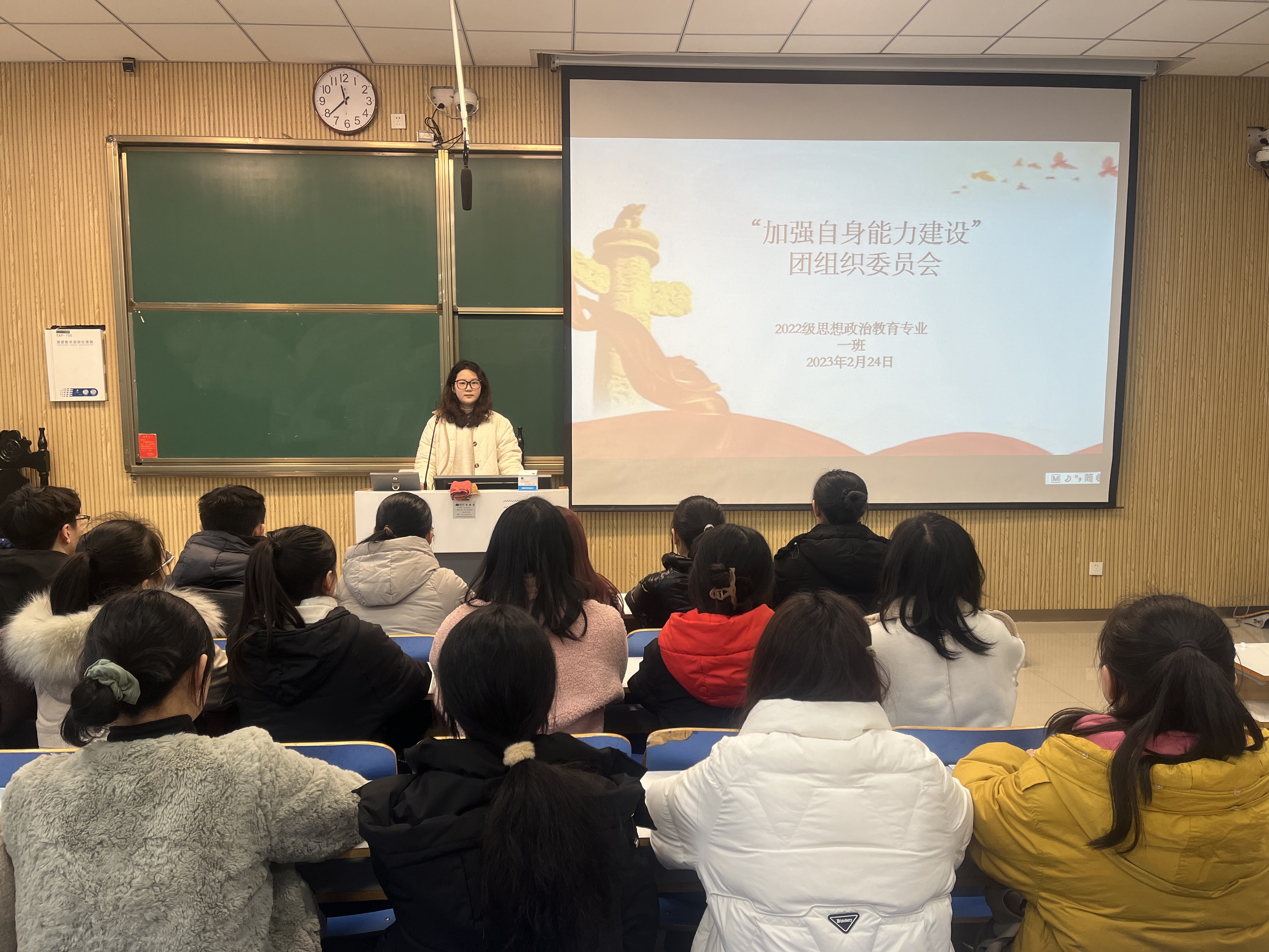 为推进团组织规范化建设,更好发挥团组织积极作用,2月24日上午,太阳集团tyc59972022级思想政治教育一班在社科楼515教室召开“加强自身能力建设”团组织委员会。2022级思想政治教育一班团委员参与本次会议,会议由团支部书记李佳茹主持。