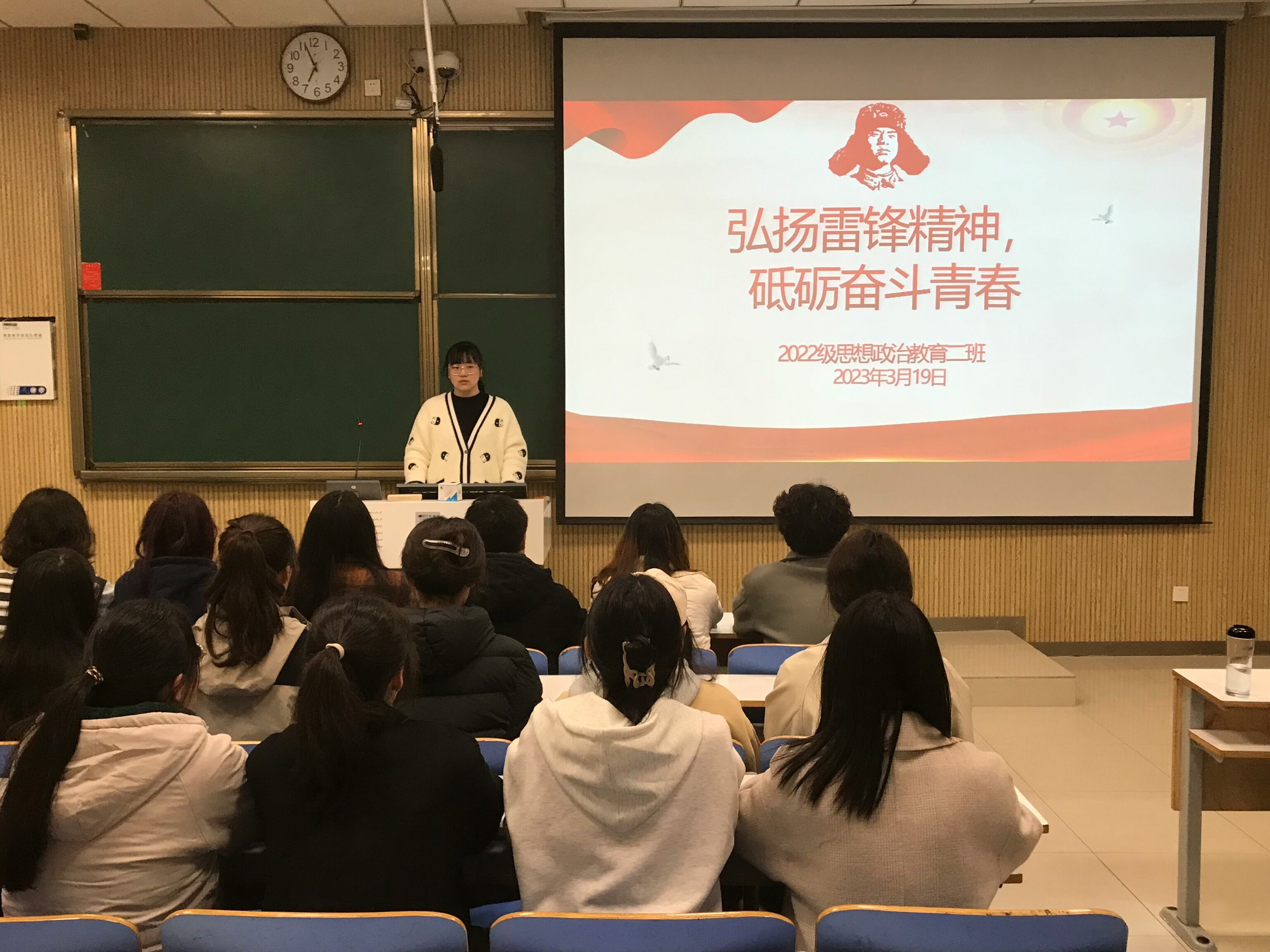 3月19日下午,太阳集团tyc59972022级思想政治教育二班在社科楼515教室召开“弘扬雷锋精神,砥砺奋斗青春”主题团课,2022级思想政治教育二班全体同学共同参加。团课由团支书李佳音主持。