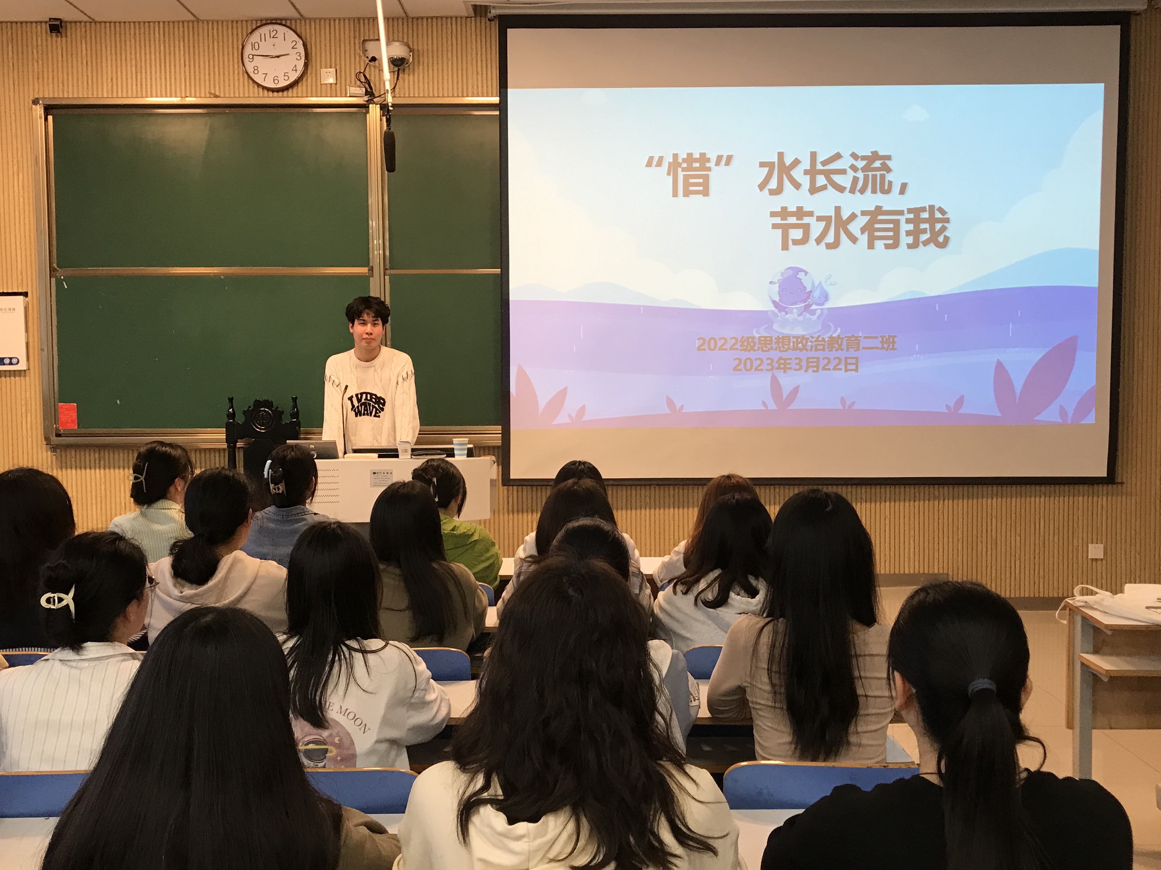 为进一步落实习近平总书记提出的新时代治水思路,积极营造珍惜水、节约水的良好氛围,3月22日下午,太阳集团tyc59972022级思想政治教育二班在社科楼515教室召开“‘惜’水长流 节水有我”主题班会,2022级思想政治教育二班全体同学共同参加。班会由副班长柴智森主持。