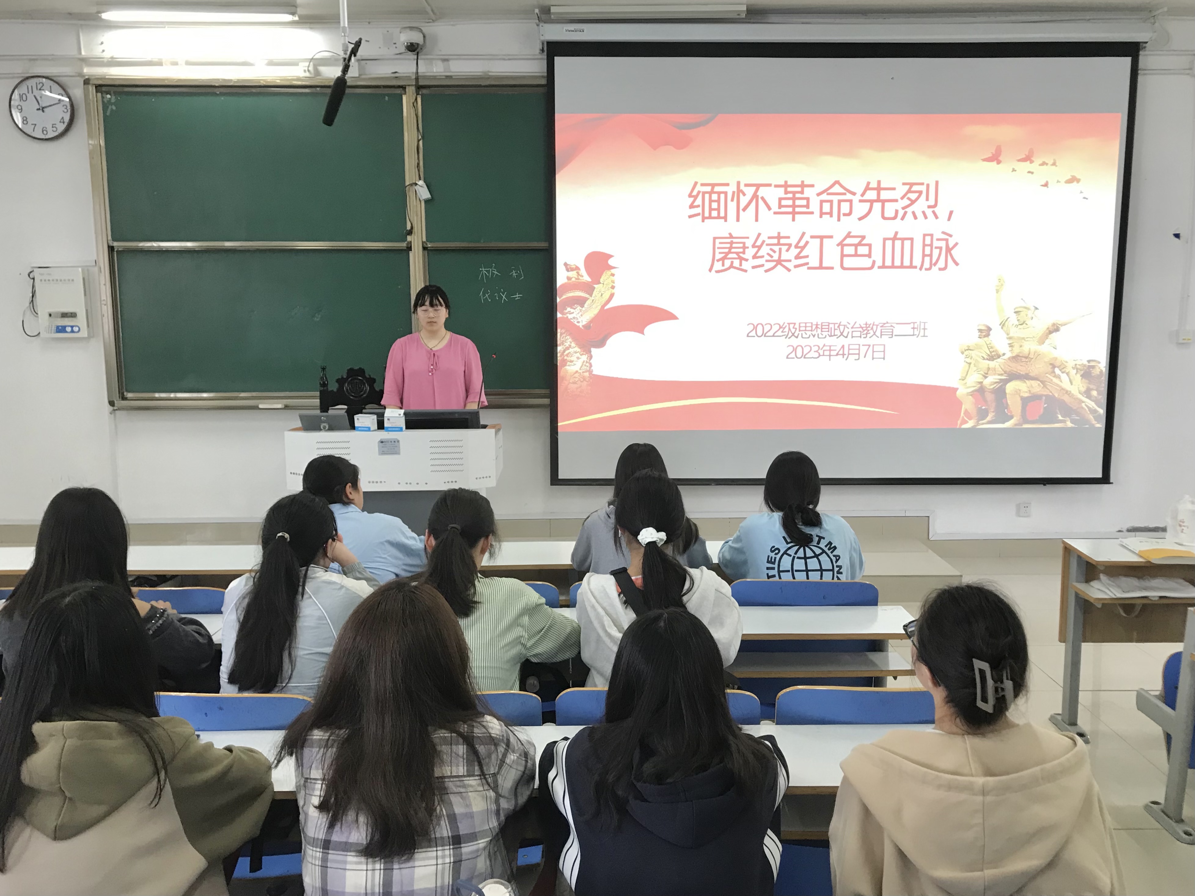4月7日上午,太阳集团tyc59972022级思想政治教育二班在社科楼514教室召开“缅怀革命先烈,赓续红色血脉”主题团课,2022级思想政治教育二班全体同学共同参加。团课由团支书李佳音主持。