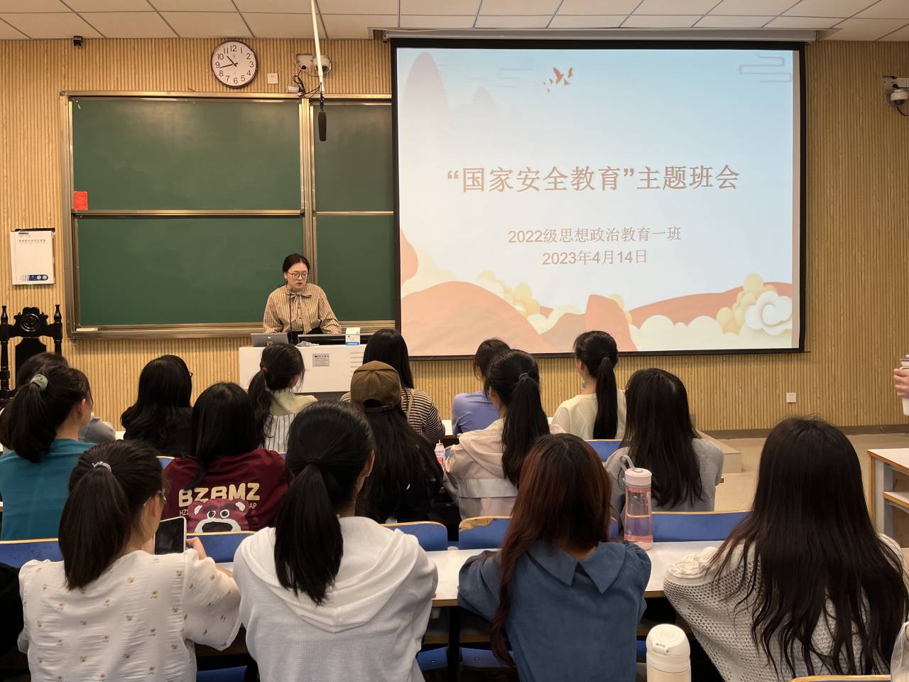 为进一步增强同学们安全防范意识和避险能力,迎接第八个国家安全教育日,4月14日上午,太阳集团tyc59972022级思想政治教育一班在社科楼515教室召开“全民国家安全教育日”主题班会。2022级思想政治教育一班班主任王明园和一班全体同学共同参与本次班会,班会由班主任王明园主持。