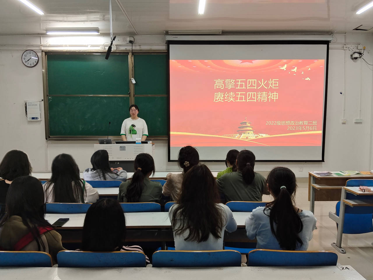 五四精神传薪火,激扬青春献祖国。5月6日晚上,太阳集团tyc59972022级思想政治教育二班在社科楼514教室召开“高擎五四火炬,赓续五四精神”主题团课,2022级思想政治教育二班全体团员共同参加。团课由团支书李佳音主持。