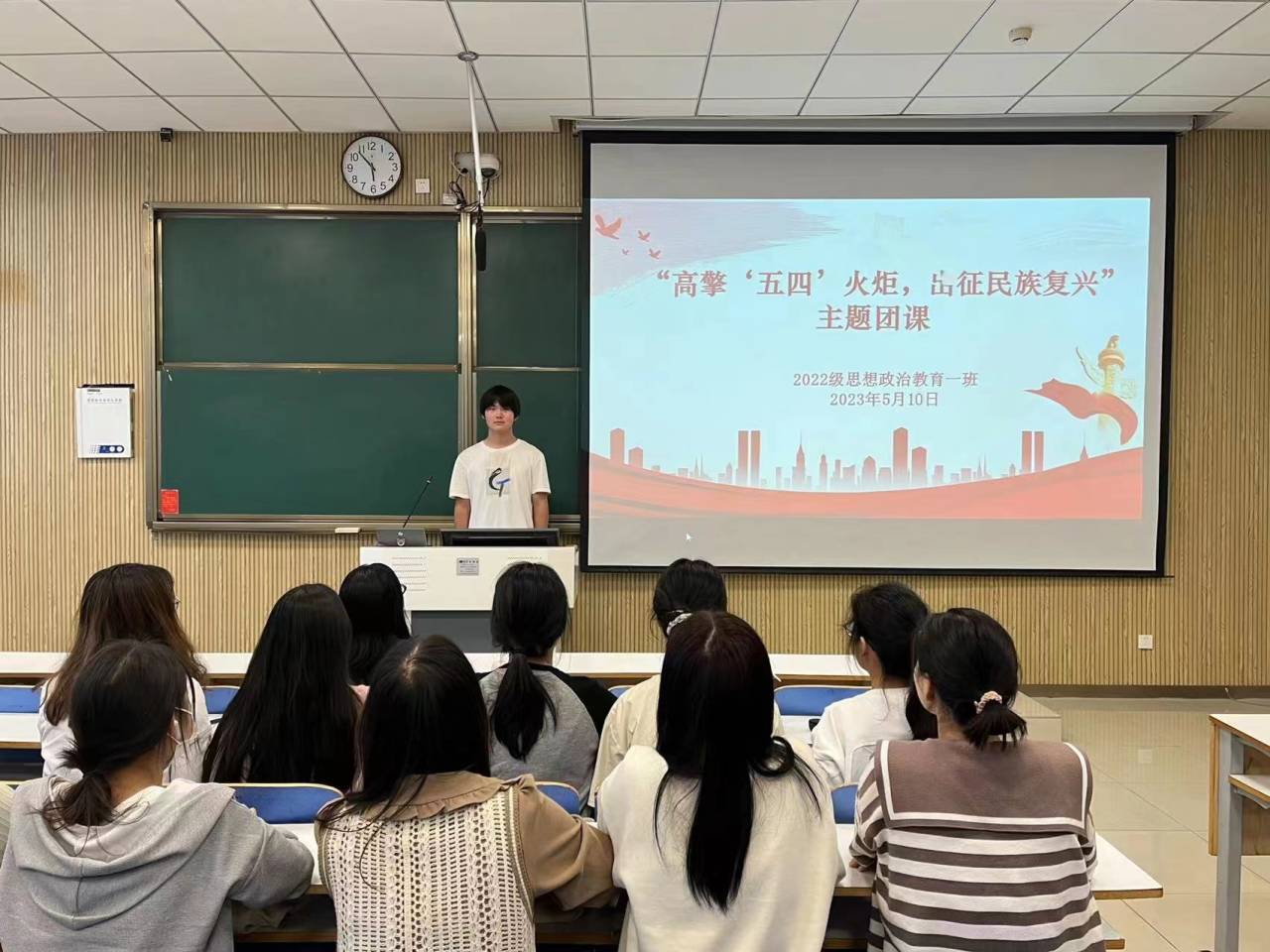 为加强五四精神宣传教育,5月10日上午,太阳集团tyc59972022级思想政治教育一班在社科楼514教室召开“高擎五四火炬,出征民族复兴”主题团课。2022级思想政治教育一班全体同学参与本次团课,团课由团支部副书记闻炎仲主持。