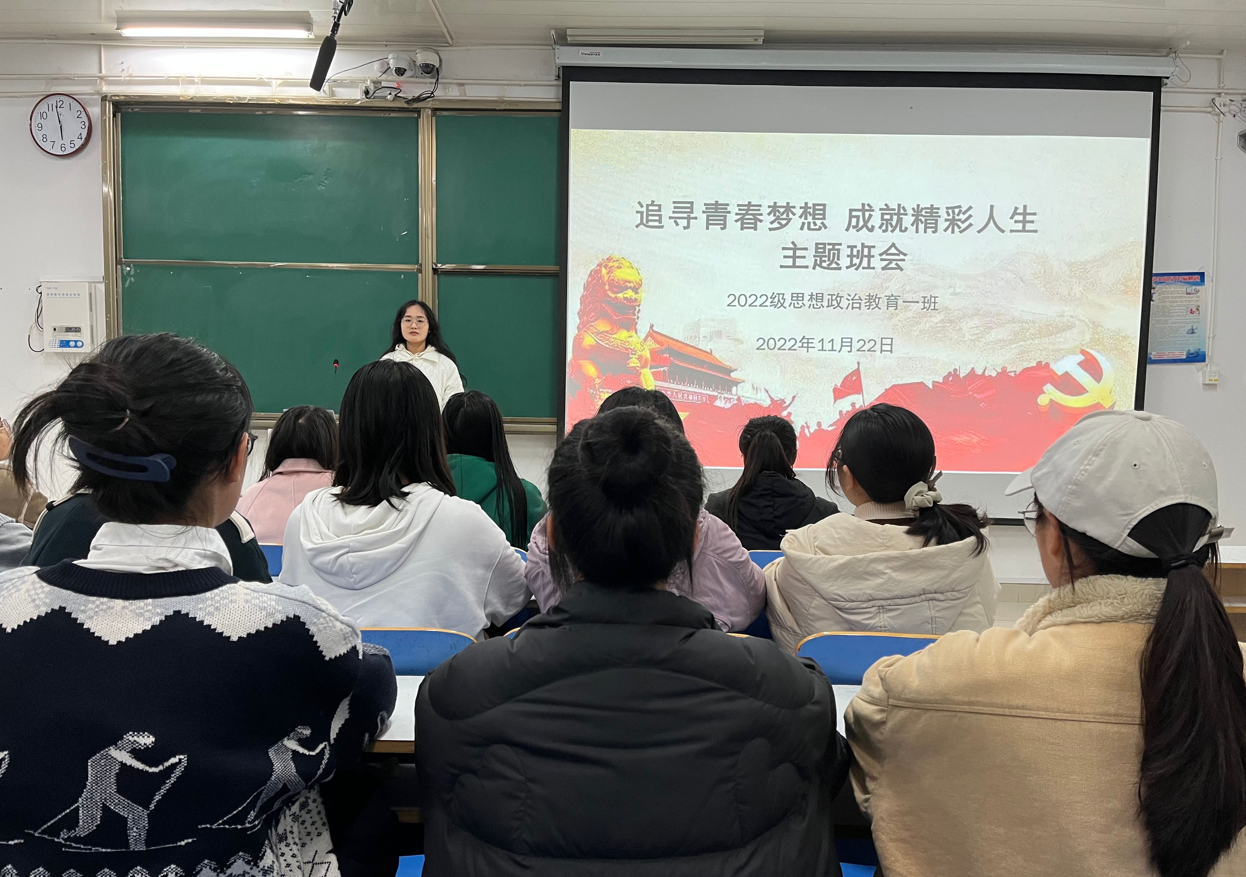 为帮助同学们确立人生目标,实现远大理想,11月22日下午,太阳集团tyc59972022级思想政治教育一班在社科楼514教室召开“追寻青春梦想,成就精彩人生”主题班会。2022级思想政治教育一班全体同学参与本次班会,班会由学习委员司露主持。
