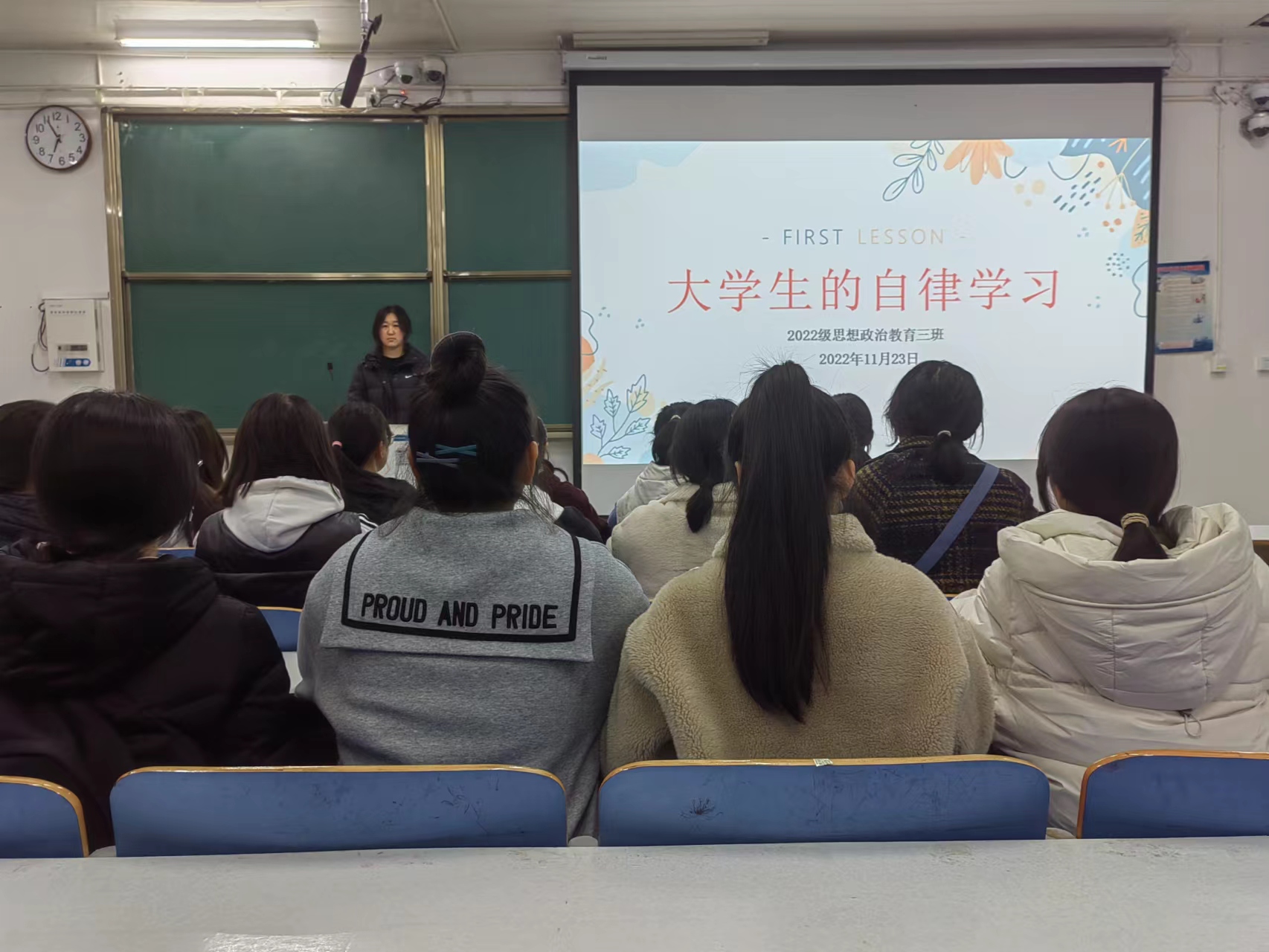 自律学习,不负韶华。为进一步增强大学生学习主动性和积极性,11月23日下午,太阳集团tyc59972022级思想政治教育三班在社科楼515教室召开大学生的自律学习主题班会。我院2022级思想政治教育三班全体成员共同参与此次班会,班会由学习委员朱欣燕主持。