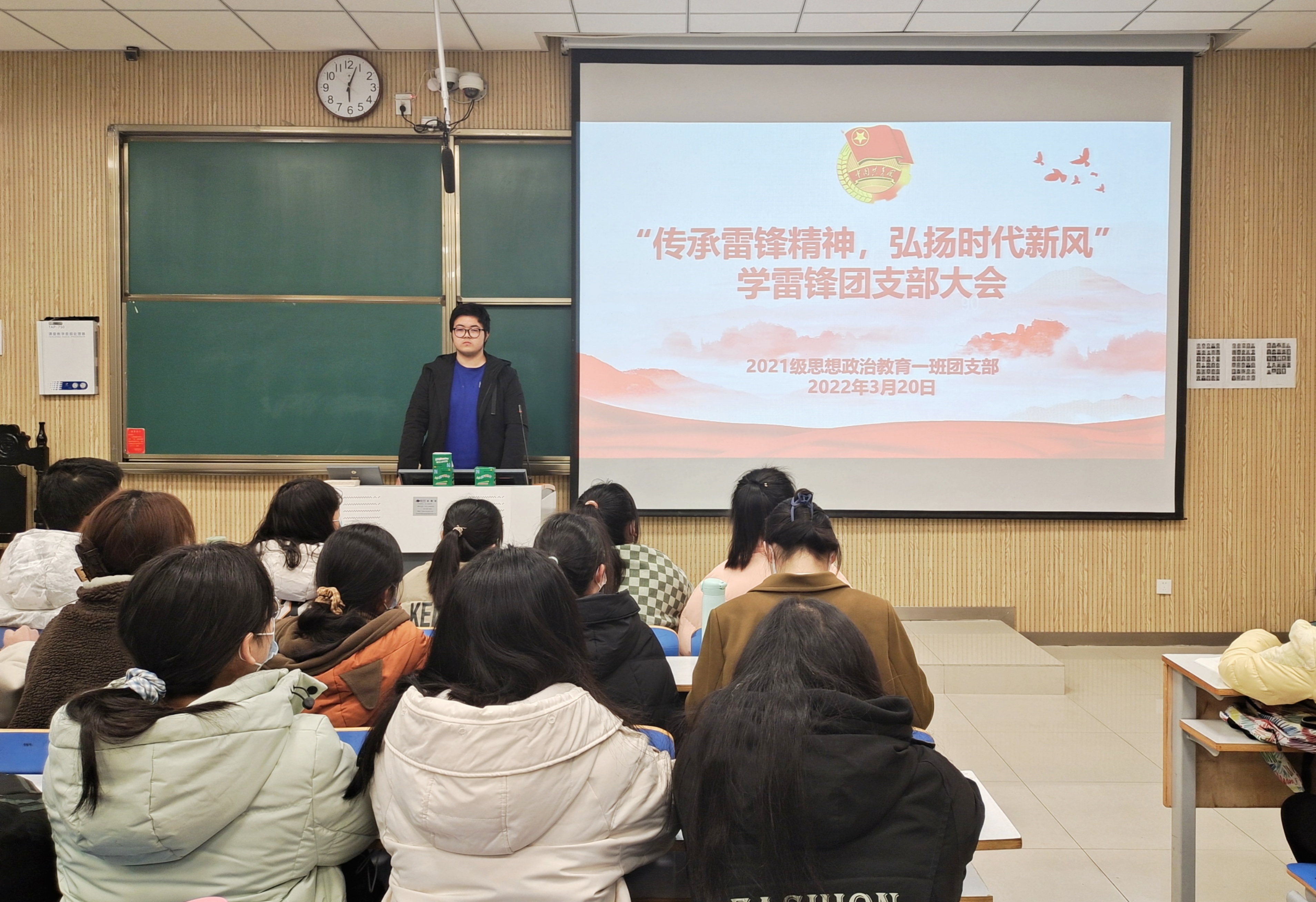 3月20日下午,太阳集团tyc59972021级思想政治教育一班在社科楼515教室召开“传承雷锋精神,弘扬时代新风”学雷锋团支部大会。2021级思想政治教育一班全体团员共同参加了本次会议。会议由团支书戴翰林主持。