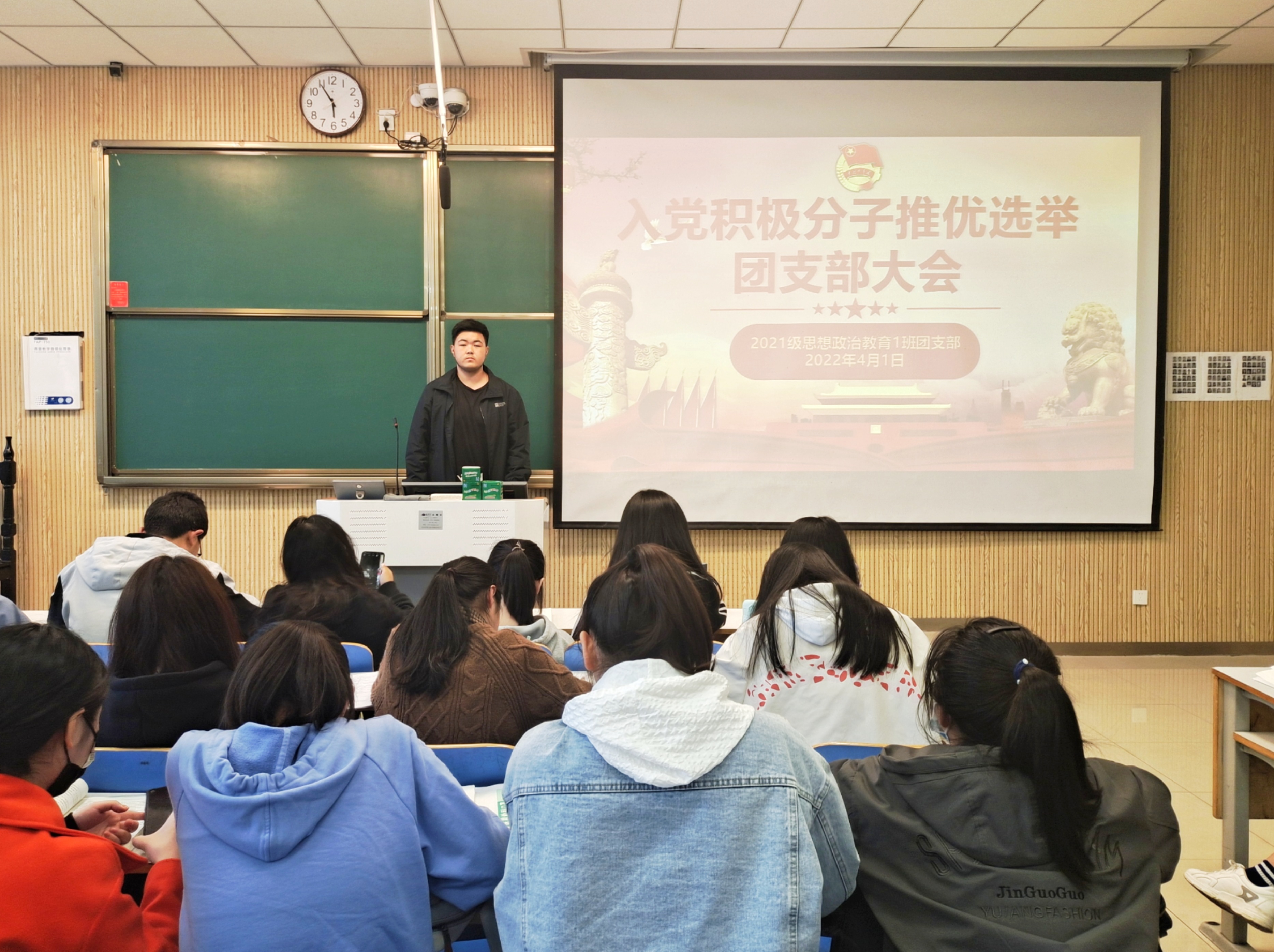 4月1日下午,太阳集团tyc59972021级思想政治教育一班在社科楼515召开入党积极分子推优选举团支部大会。2021级思想政治教育一班全体团员共同参加了本次团支部大会。团支部大会由团支书戴翰林主持。