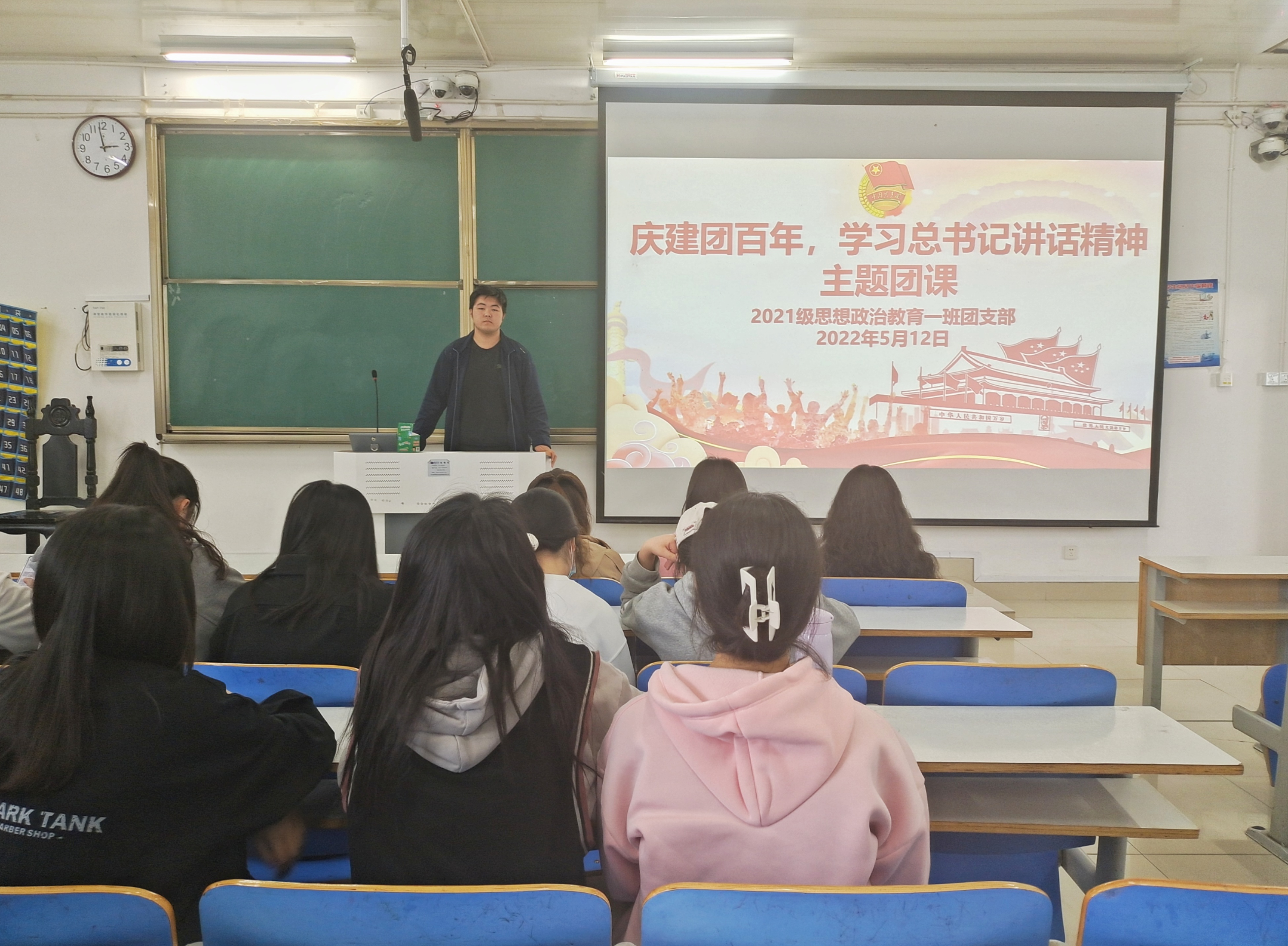 5月12日下午,太阳集团tyc59972021级思想政治教育一班在社科楼514教室召开“庆建团百年,学习总书记讲话精神”主题团课。2021级思想政治教育一班全体团员共同参加了本次团课,团课由团支书戴翰林主持。