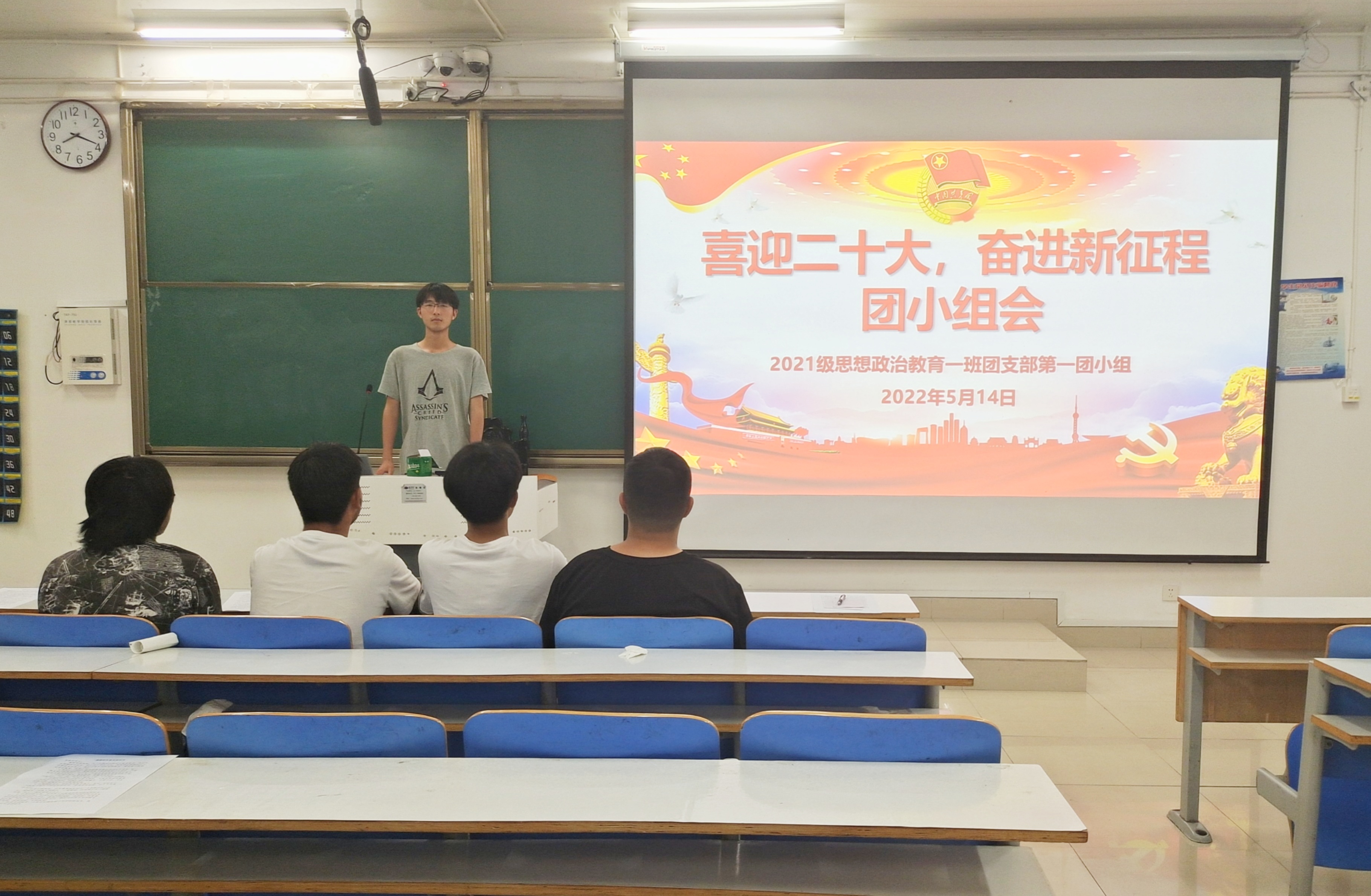 5月14日下午,太阳集团tyc59972021级思想政治教育一班团支部第一团小组在社科楼514教室召开“喜迎二十大,奋进新征程”团小组会议。2021级思想政治教育一班团支部第一团小组全体成员共同参加了本次会议。会议由第一团小组组长孙宁主持。