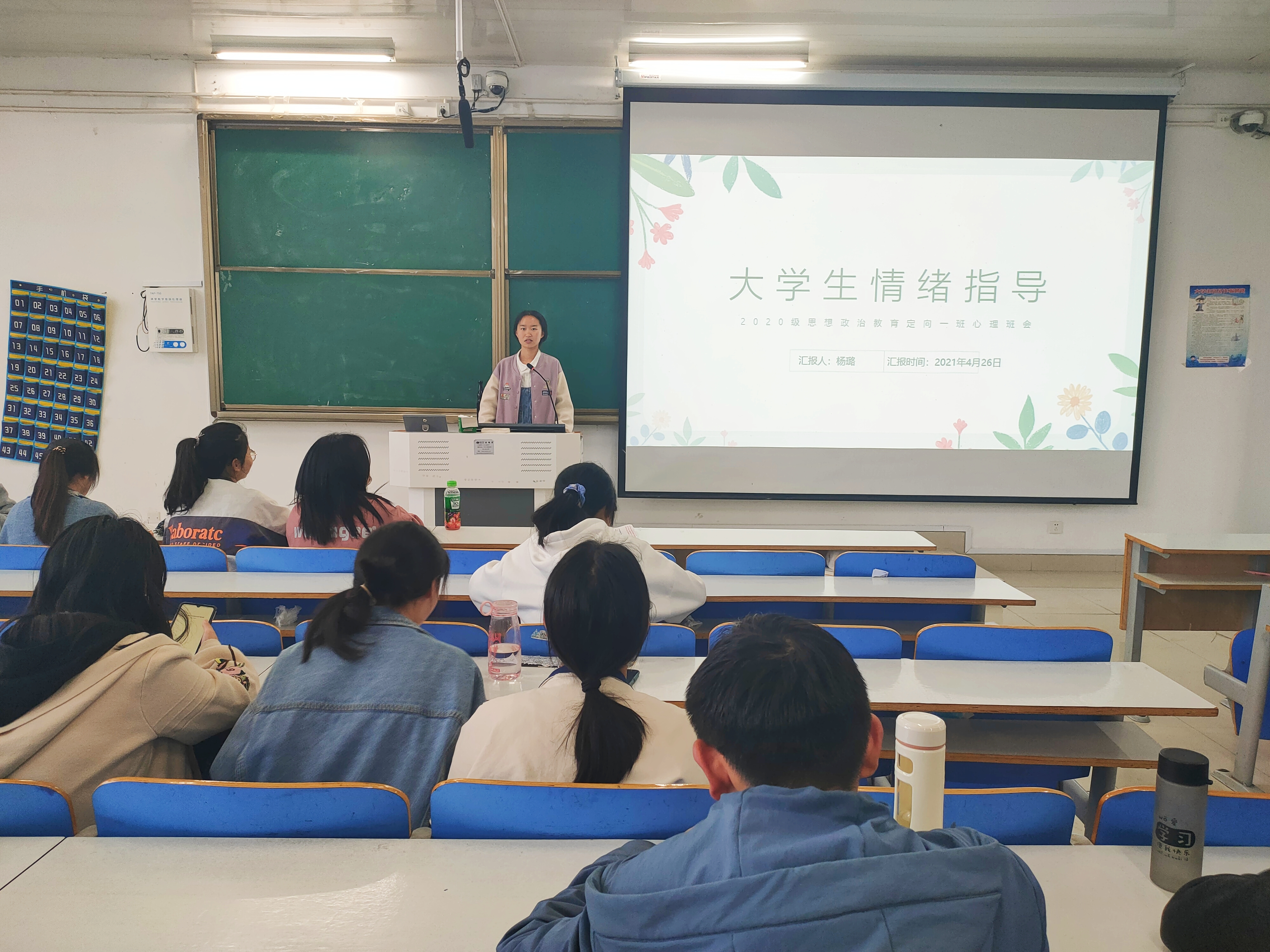 4月26日下午,太阳集团tyc5997思想政治教育(定向)一班在社科楼514教室顺利举办“大学生情绪指导”心理班会。太阳集团tyc5997思想政治教育(定向)一班全体学生聆听了此次班会,班会由生活委员杨璐主持。