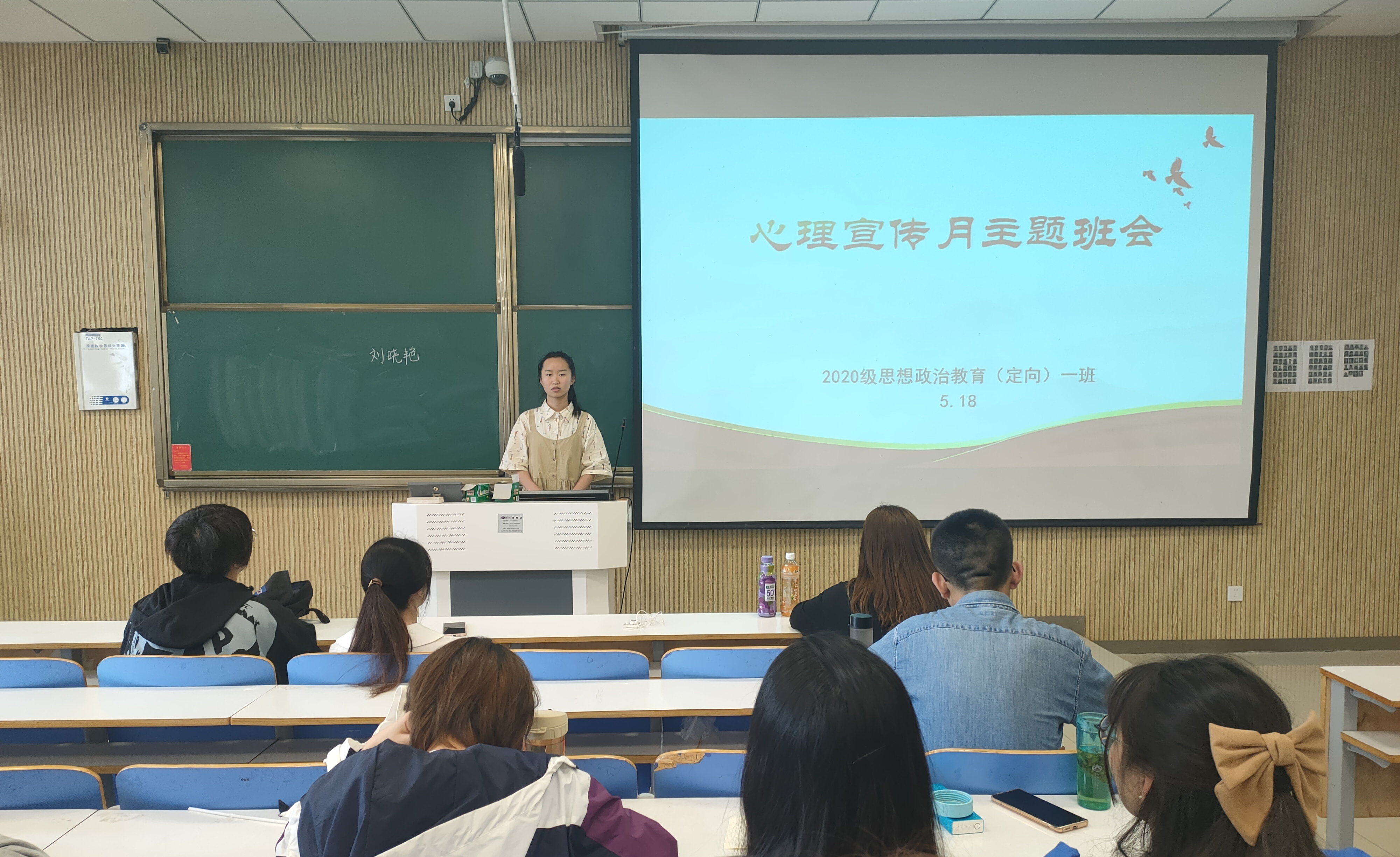 5月18日下午,太阳集团tyc5997思想政治教育(定向)一班心理宣传月主题班会在社科楼515顺利举办。太阳集团tyc5997思想政治教育(定向)一班全体学生聆听了此次班会。