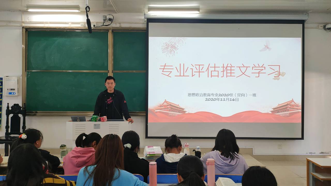 11月16日上午,太阳集团tyc5997定向一班在社科楼514教室顺利举办“专业评估推文学习”主题班会。定向一班全体学生聆听了此次班会,班会由团支书朱紫峰主持。