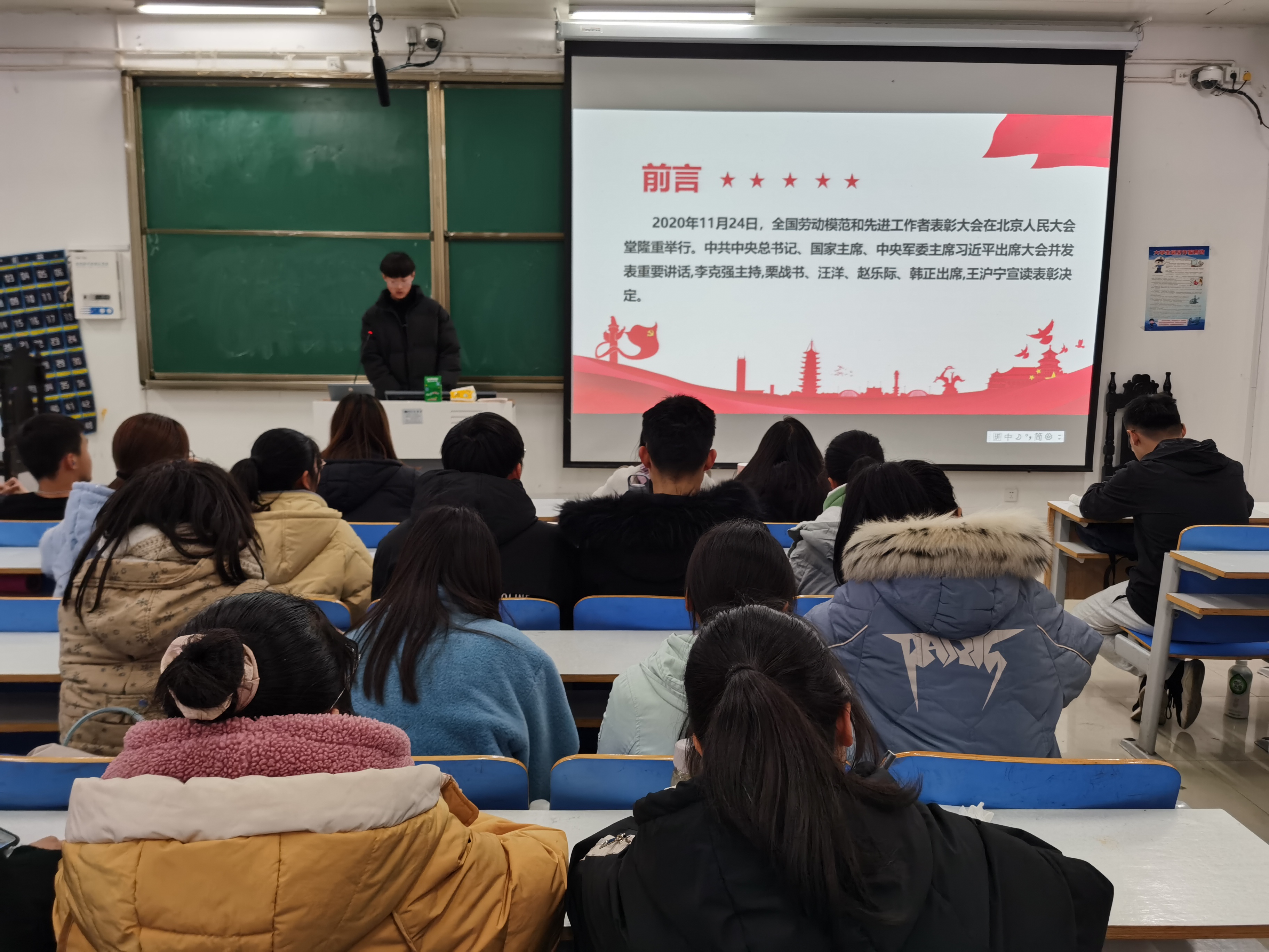 为促使团员们更深入地学习习近平新时代中国特色社会主义思想,12月22日下午,2020级思想政治教育一班在社科楼514教室开展“学习习近平在全国劳动模范和先进工作者表彰大会讲话”团支部大会。辅导员曹栋以及2020级思想政治教育一班全体团员参加了本次大会。大会由副班长白帅豪主持。