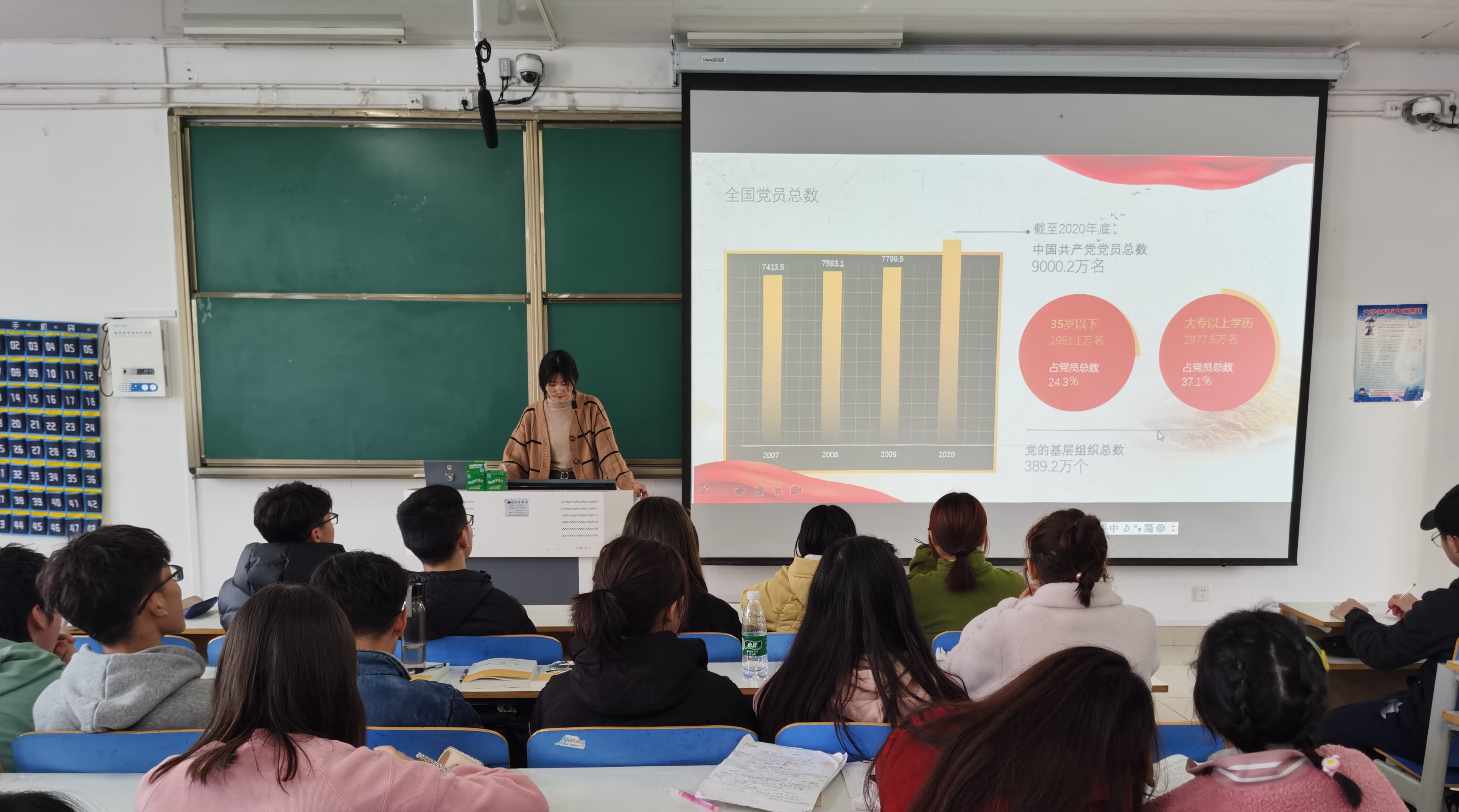 胸怀千秋伟业,百年恰是风华正茂。2021是中国共产党之百年华诞,为激励学生永葆初心,顽强奋斗,3月5日上午,2020级思想政治教育一班在社科楼514教室开展“重温党史,致敬百年”团课。2020级思想政治教育一班全体同学参加了本次团课。团课由学习委员申畅畅主持开展。