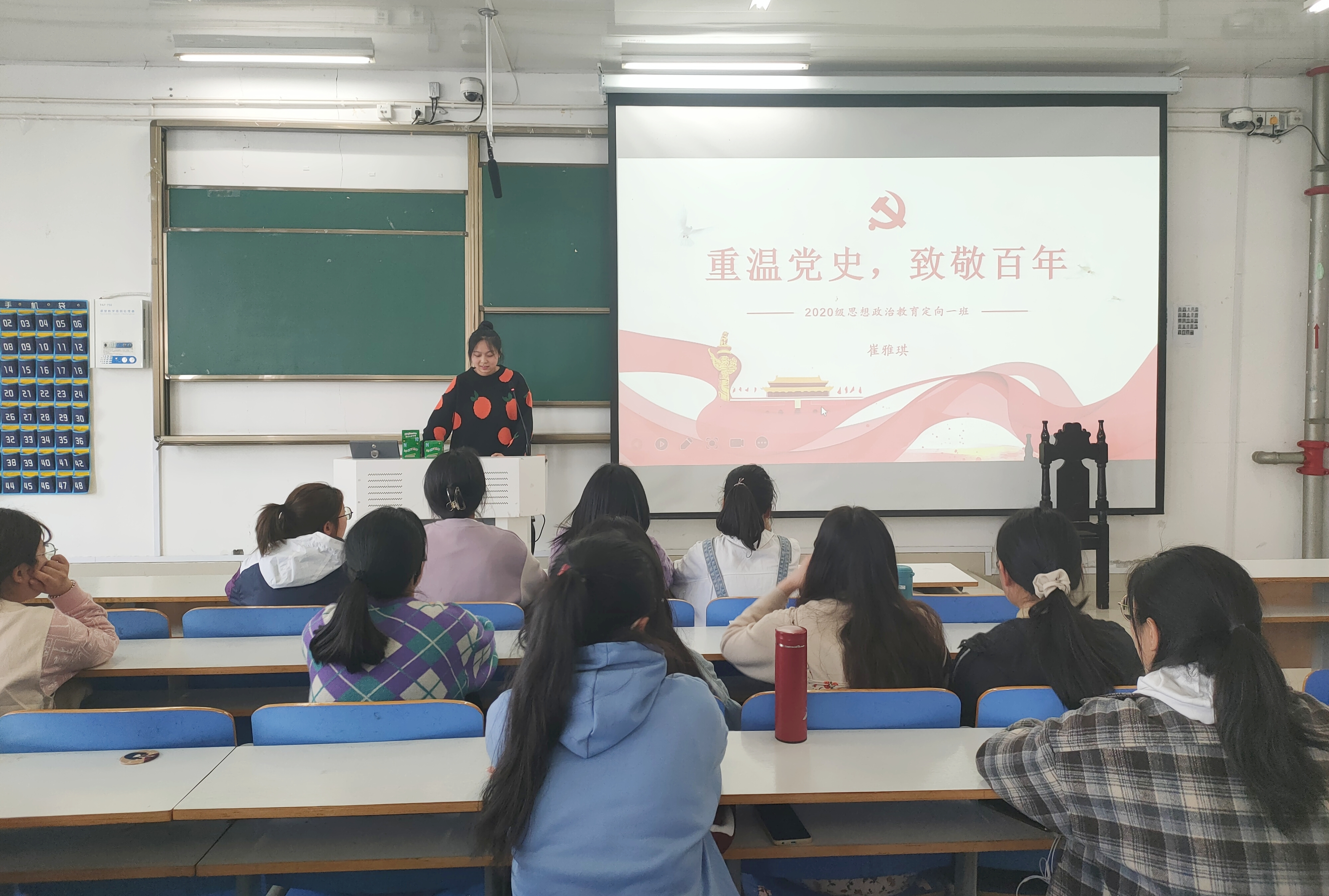 3月24日下午,太阳集团tyc59972020级思想政治教育(定向)一班在社科楼516教室顺利举办“重温党史,致敬百年”团支部大会。定向一班全体学生聆听了此次会议,会议由劳动委员崔雅琪主持。