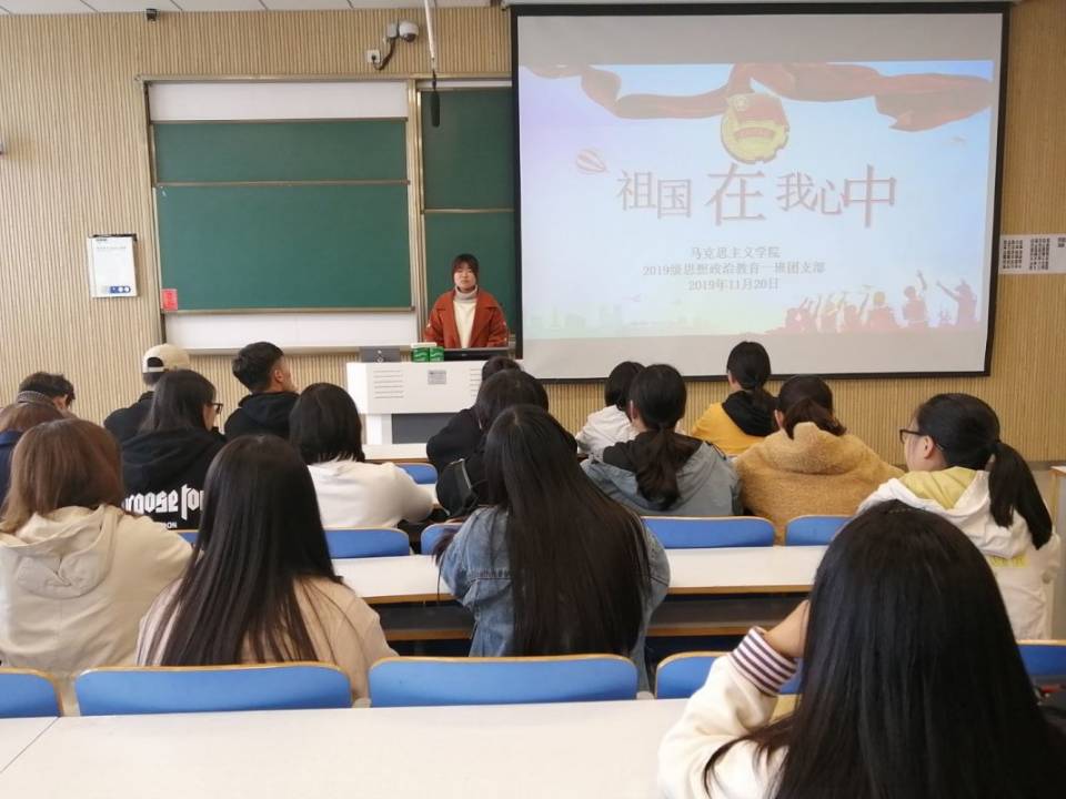 11月20日上午,太阳集团tyc59972019级思想政治教育第一团支部第三团小组在社科楼515教室召开祖国在我心中主题团课。第一团支部第三团小组全体成员参加本次团课。团课由团小组组长翟新芝主持。