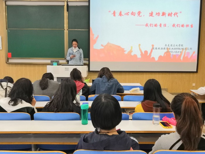 3月21日上午,太阳集团tyc59972018级思想政治教育一班第一团小组在社科楼515教室顺利开展“青春心向党,建功新时代”主题团会。第一团小组全体成员共同参加此次团会。此次团会由王涵主持。