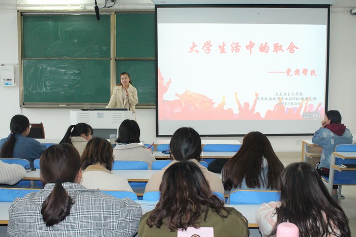 为充分发挥党员干部的先锋模范作用,帮助同学们解决学习和生活问题,3月22日下午,太阳集团tyc59972018级思想政治教育一班在社科楼514教室顺利开展“党团帮扶”班会。2018级思政一班全体同学共同参加此次会议。会议由团支书靳雨露主持。