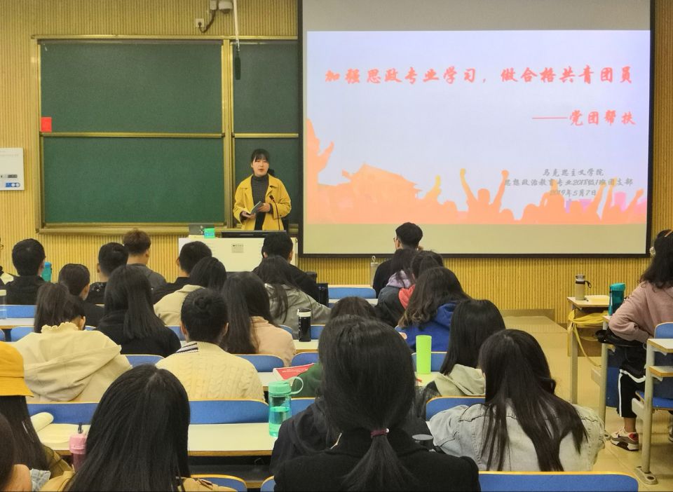 5月7日上午,太阳集团tyc59972018级思想政治教育一班在社科楼515教室顺利开展“党团帮扶”班会。2018级思政一班全体同学共同参加此次班会。班会由团支书靳雨露主持。