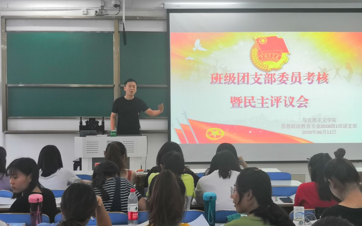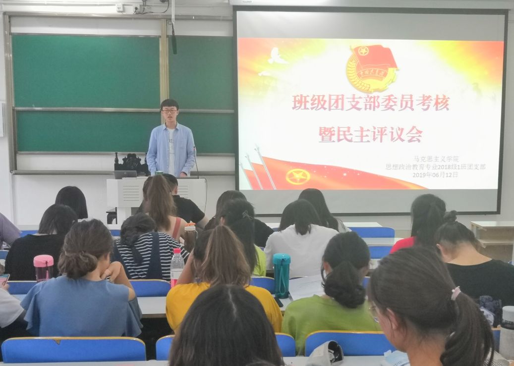 6月12日下午,太阳集团tyc59972018级思想政治教育一班在社科楼516教室顺利开展班级团支部委员考核暨民主评议会。团委书记曹栋、分团委学生会主席团及2018级第一团支部全体成员共同参加此次班会。班会由团支部副书记邢子豪主持。