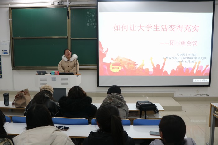 12月10日下午,我院2018级第一团支部第三团小组在社科楼516教室顺利开展了“如何让大学生活过得充实”主题团会。第三团小组全体成员共同参加此次团会。此次团会由团小组成员卞晓莹主持。