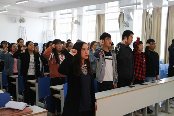 班会上,谢文静首先向大家阐述五四青年节活动的目的与意义。她强调,了解五四历史,学习五四精神是当代青年争取实现祖国繁荣富强、民族伟大复兴的精神动力。我们不但要继承五四精神,而且要弘扬五四精神,争当新时代中国好青年。同时,谢文静带领大家宣誓,再次重温入团誓词。接着,陈盈盈为大家朗诵《前进吧,青年!》一诗,其抑扬顿挫、铿锵有力的声音富有感染力,赢得了同学们阵阵掌声并引发同学们对五四革命的深深思索。最后,吴亦昕组织同学们上台书写自己收藏的励志名言,以此勉励大家不忘初心,砥砺前行,做自立自强的社会主义新青年。