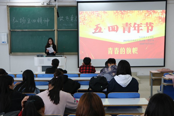 为迎接五四青年节的到来,引导我院学生正确学习五四精神,4月25日上午,我院2017级思想政治教育一班在社科楼516教室召开五四青年节主题班会。2017级思想政治教育一班全体同学参加了本次班会。班会由团支书谢文静主持。
