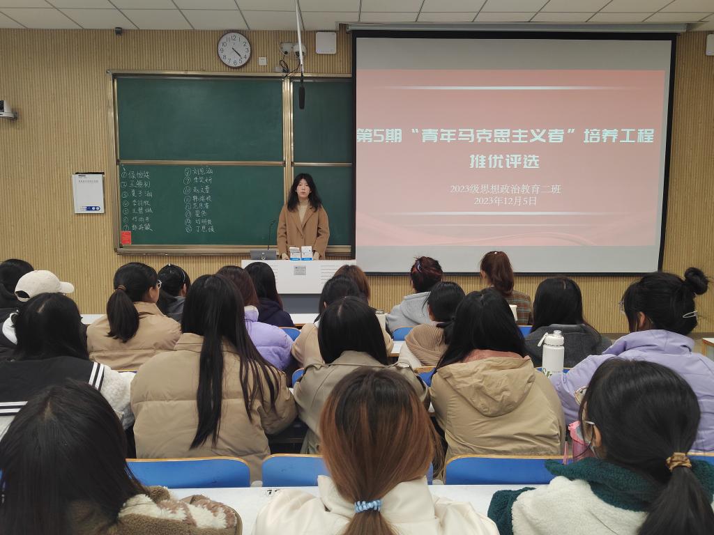 为评选出优秀青年,培养忠于党和人民事业的青年政治骨干,12月5日下午,太阳集团tyc59972023级思想政治教育二班在社科楼514教室举办了第5期“青年马克思主义者”培养工程推优评选活动。本次活动由团支书王慜初主持,全体二班同学参与。