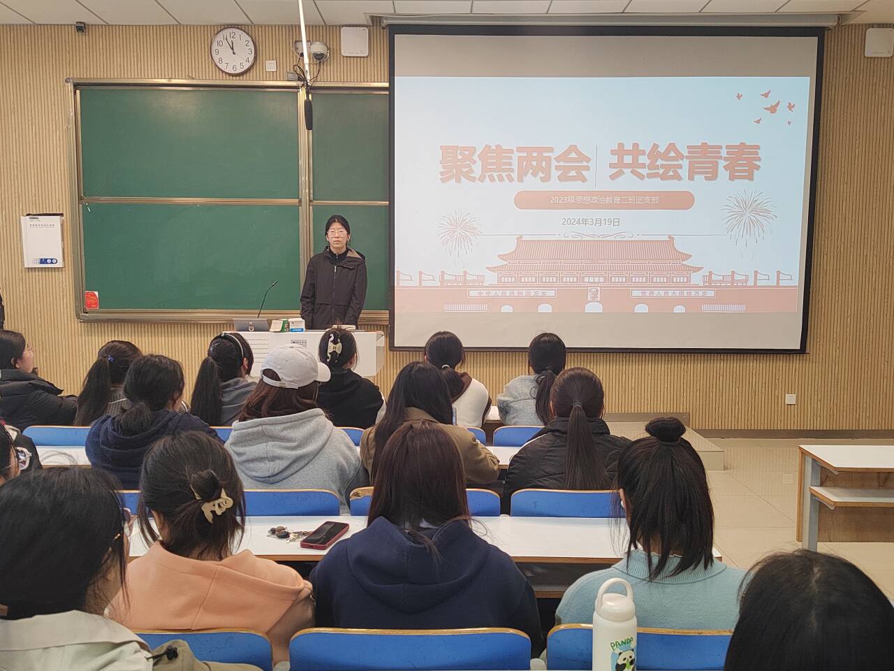 “时代总是把历史责任赋予青年”,为引导青年大学生听清时代脉搏,抓牢历史责任,3月19日下午,太阳集团tyc5997思想政治教育二班在社科楼515教室召开“聚焦两会,共绘青春”主题团课。本次团课由团支书王慜初主持,全体二班同学参加。